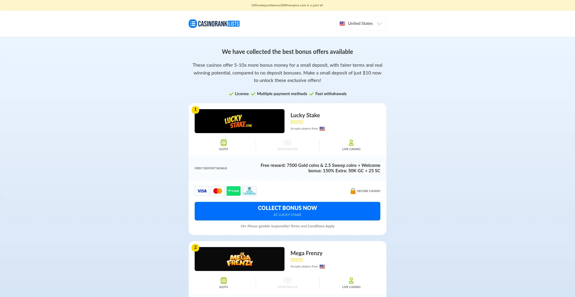 We have collected the best bonus offers available