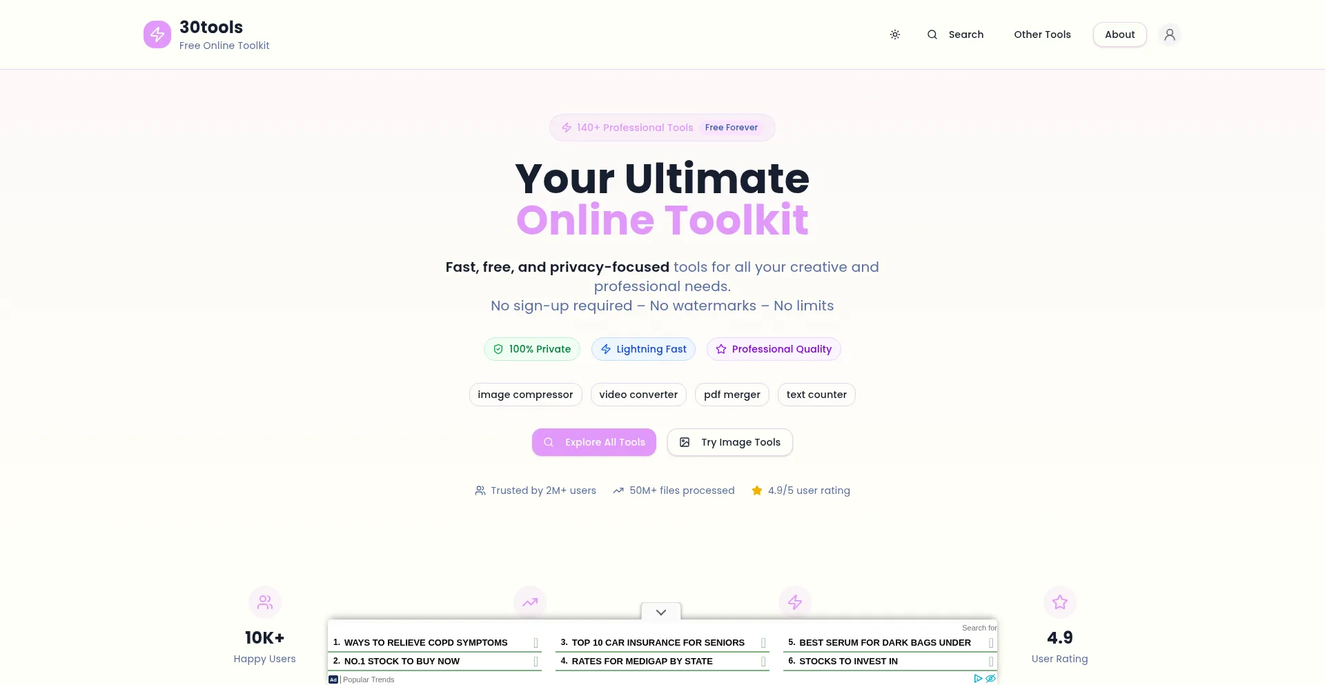 30tools - 135+ Free Online Tools | Image, PDF, Video, SEO & Developer Tools