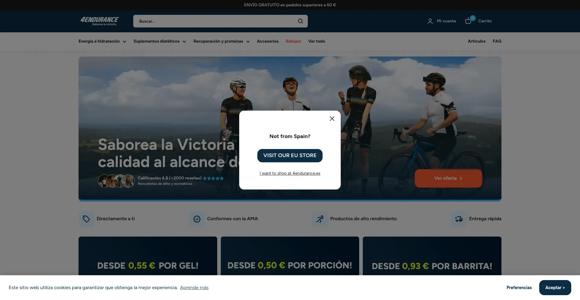 Die Website nutzt beliebte Produktnamen und Marken, um Traffic zu generieren und Benutzerinteresse zu wecken. Diese Produkte können durch Werbekampagnen oder Rabattstrategien angeboten werden, die darauf ausgelegt sind, die Besucherinteraktion und Konversionsraten für 4endurance.es zu erhöhen.