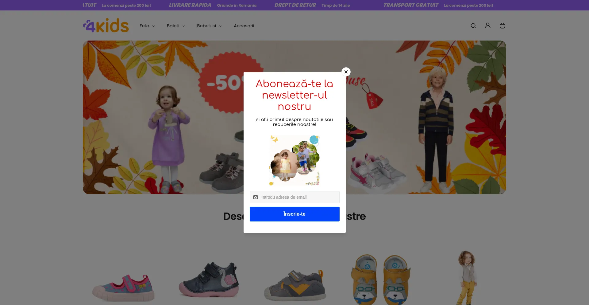 4Kids magazinul unde gasesti colectii variate de incaltaminte din piele naturala, imbracaminte, si accesorii pentru copii ⭐ Comanda la cel mai bun pret