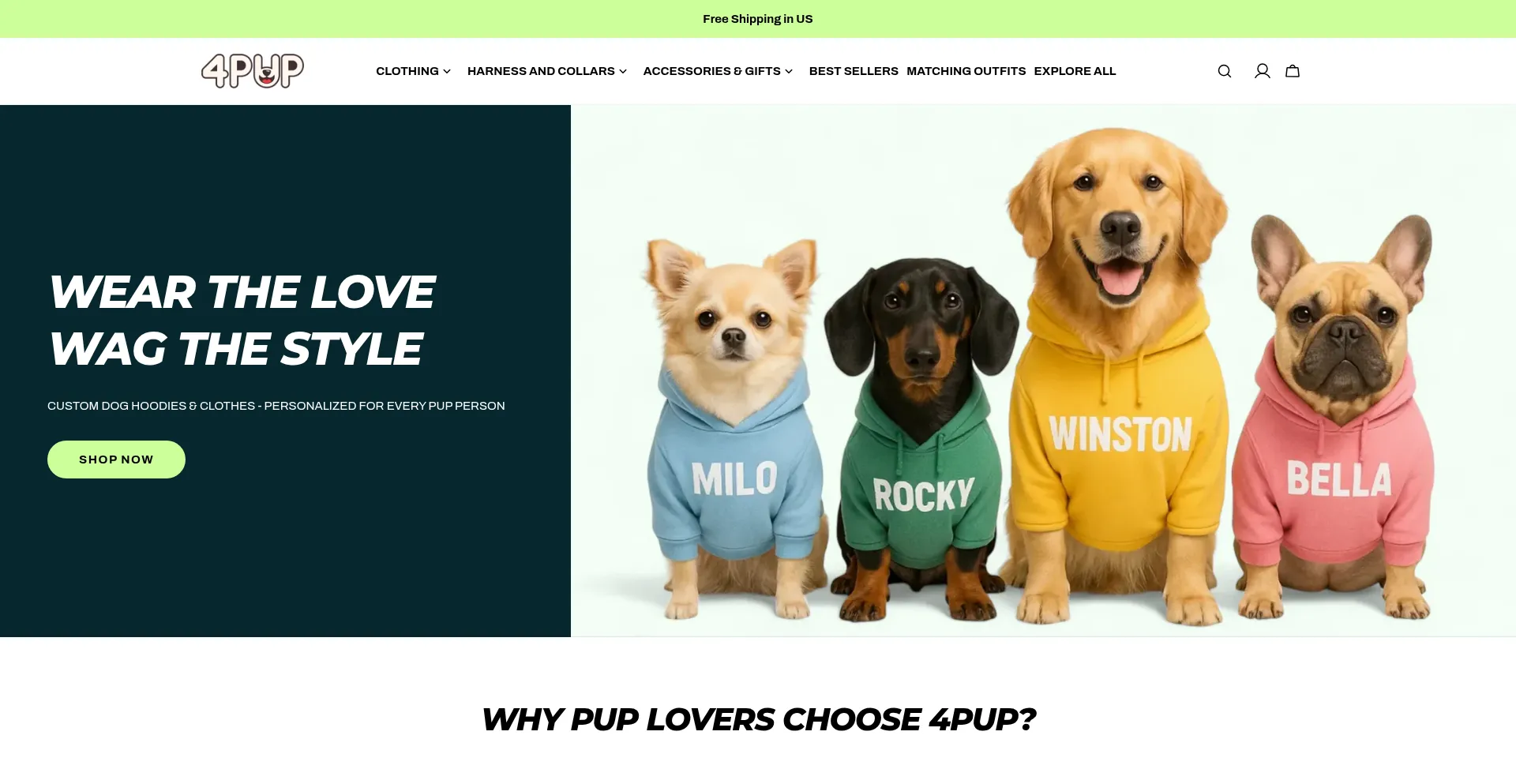 Find premium dog clothes, harnesses, jackets, and more at 4Pup. Shop stylish, durable, and comfy products designed for every breed and size.