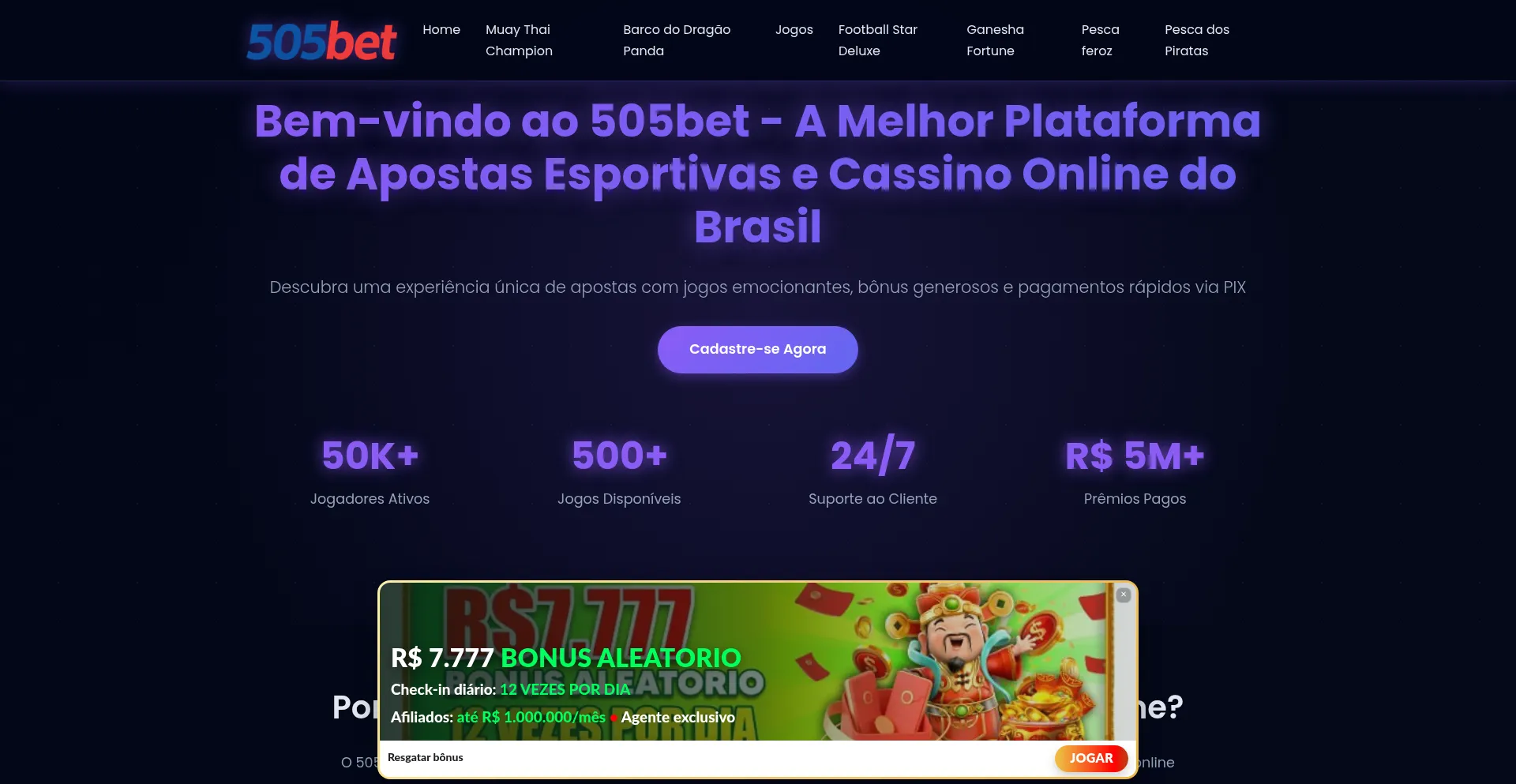 505bet é a melhor plataforma de apostas esportivas e cassino online do Brasil. Oferecemos jogos de slots, apostas ao vivo, bônus generosos e suporte 24/7.