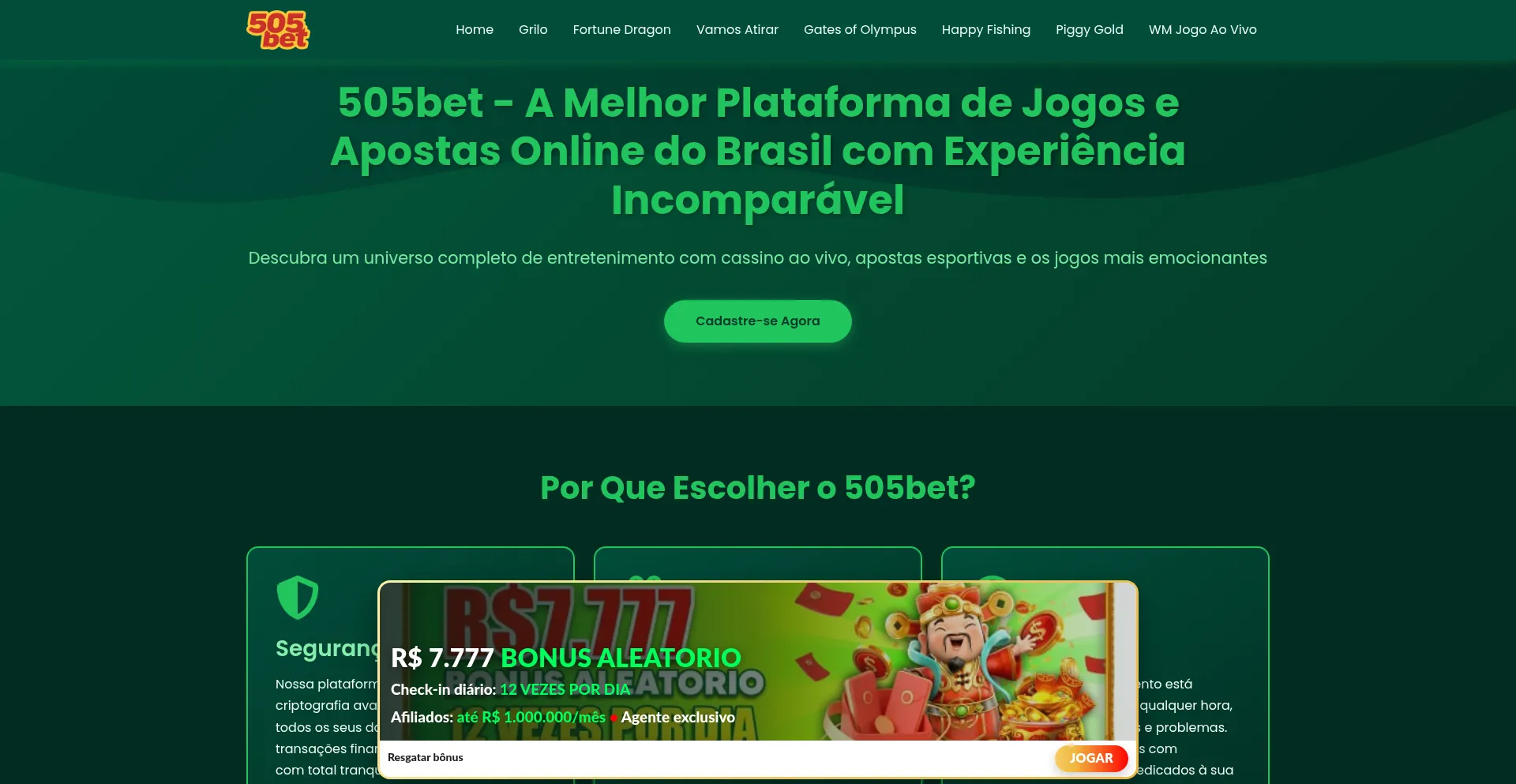 505bet oferece os melhores jogos de cassino online, apostas esportivas ao vivo e jogos de mesa com dealers reais. Bônus exclusivos para jogadores brasileiros.