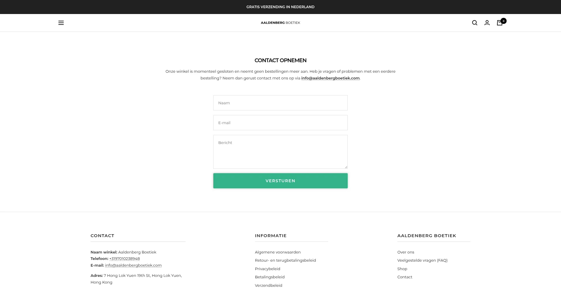 Ist Aaldenbergboetiek.com ein Betrug oder ein seriöser Shop? Sehr niedrige Vertrauenswürdigkeit 1/100