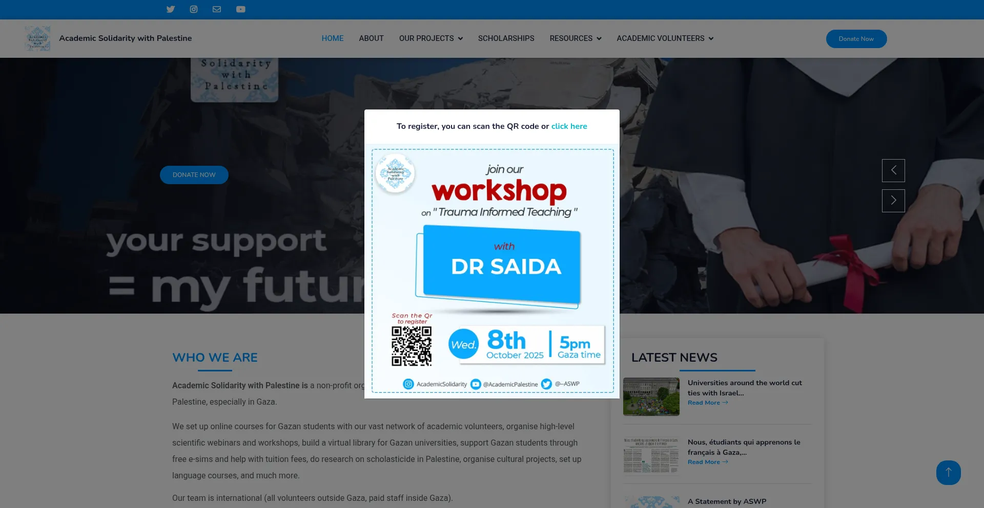 Die Anwesenheit von Social-Media-Links auf der Website deutet darauf hin, dass academicsolidaritywithpalestine.org offizielle Konten auf Social-Media-Plattformen beibehält, was ein positiver Indikator für Glaubwürdigkeit und Engagement ist.