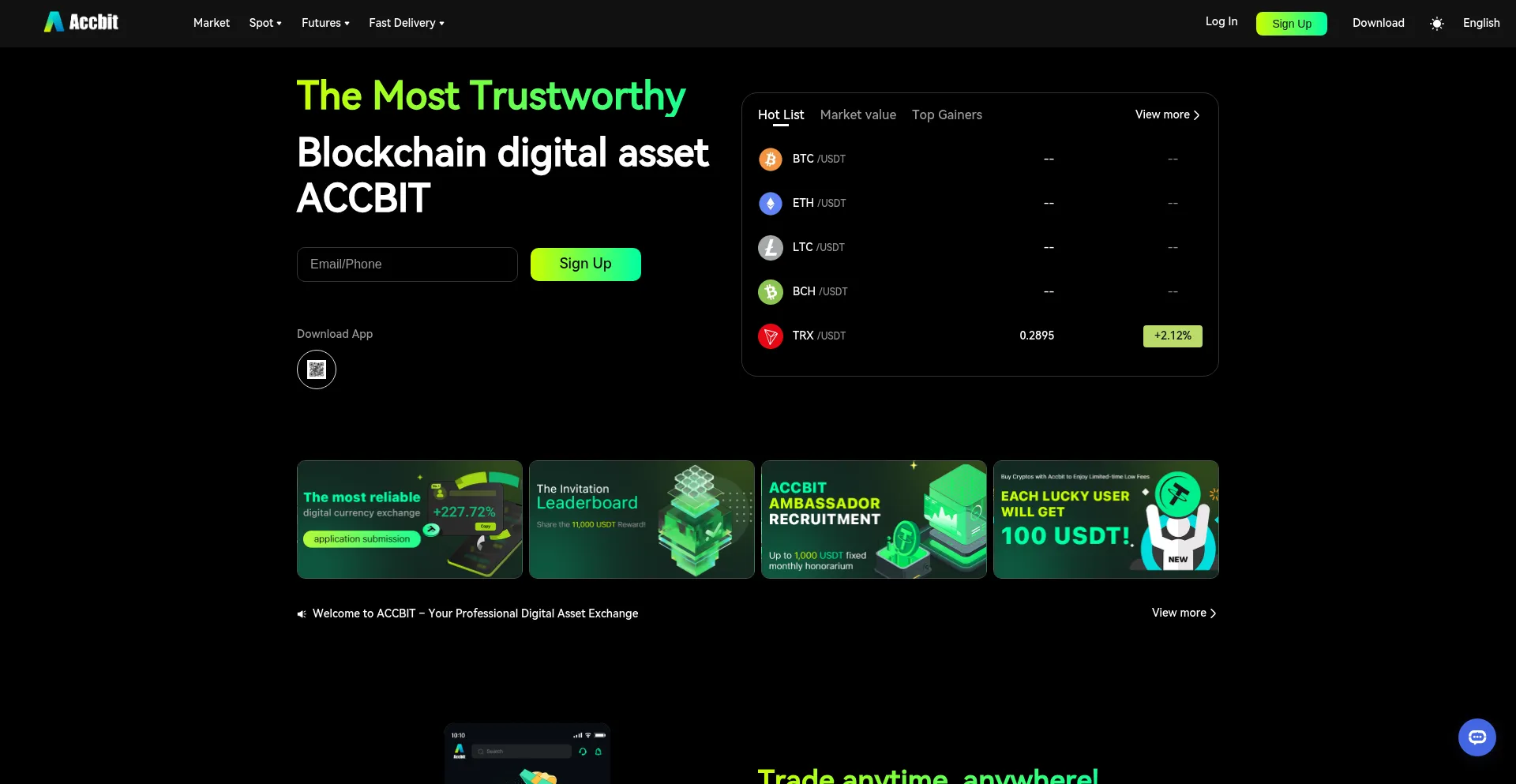 Trade BTC, NFTs, and Altcoins | Begin a New Era of Hassle-Free Trading | ACCBIT Buy and sell BTC, altcoins, and NFTs on ACCBIT. Invest in spot and futures markets, or stake your...