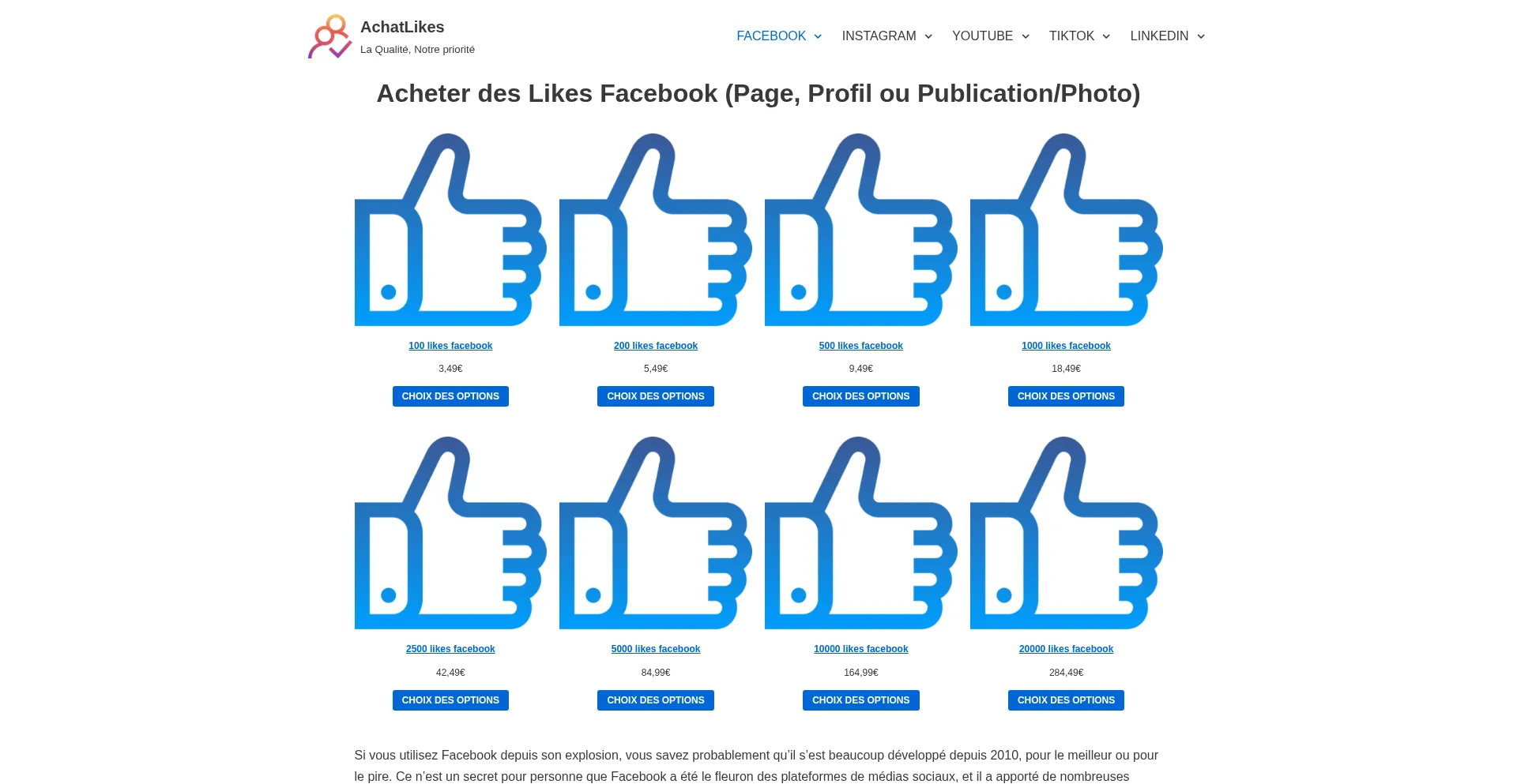 Acheter des Likes Facebook Francais (Page, Profil ou Publication/Photo) - AchatLikes