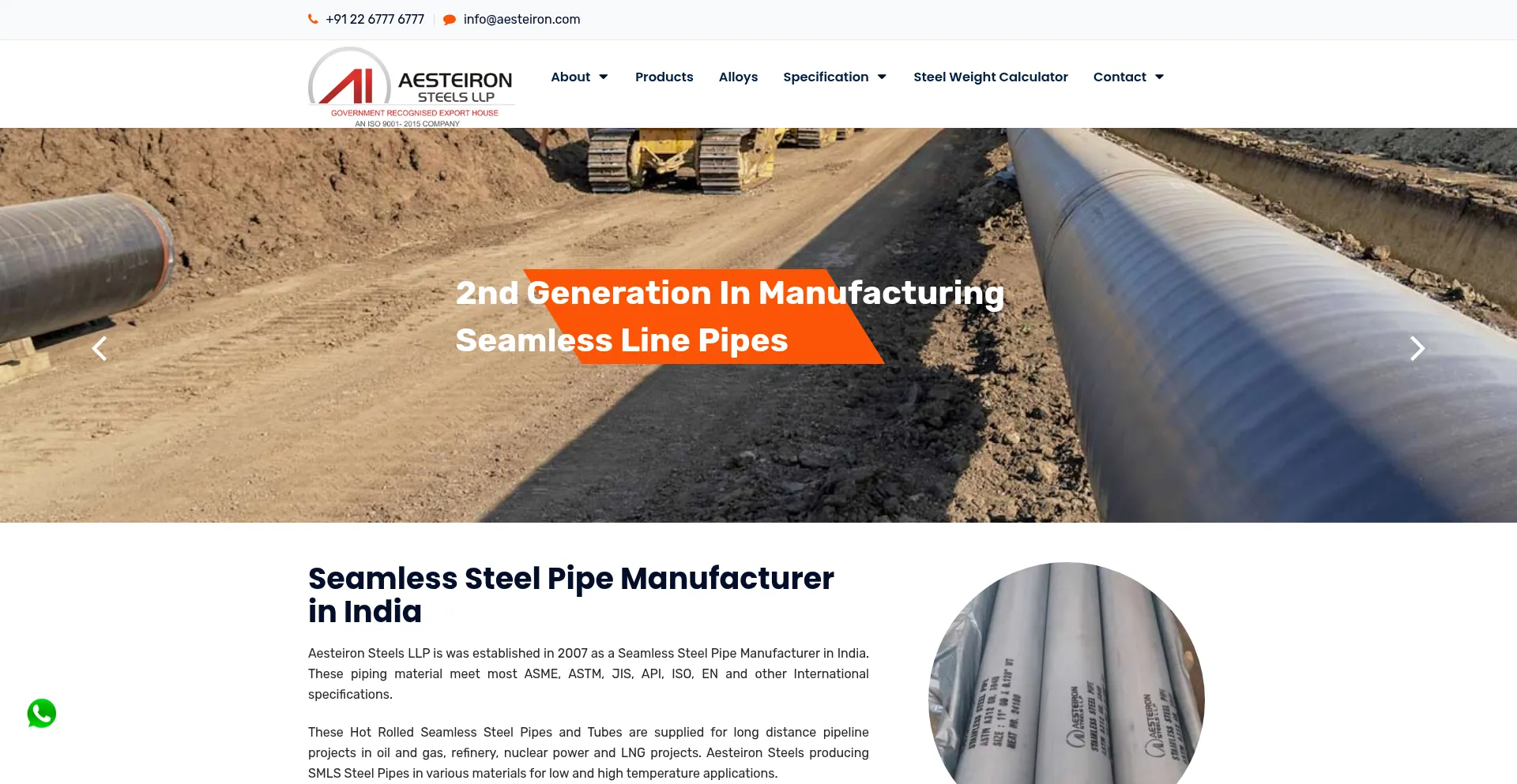 Seamless Steel Pipe Manufacturer in India, Aesteiron Steels LLP