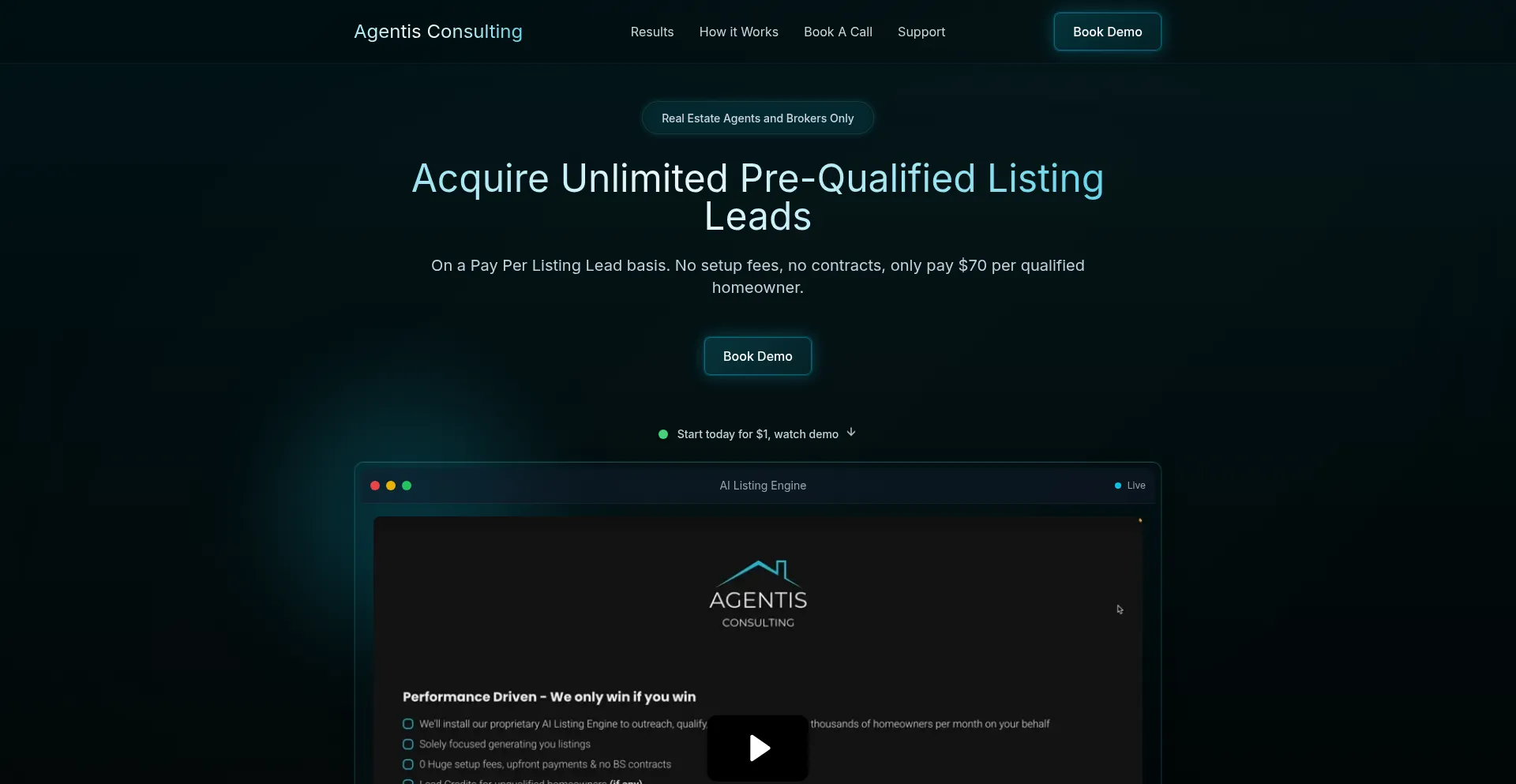 Agentis Consulting - AI Listing Engine for Real Estate Agents. Generate unlimited pre-qualified listing leads on a pay-per-lead basis.