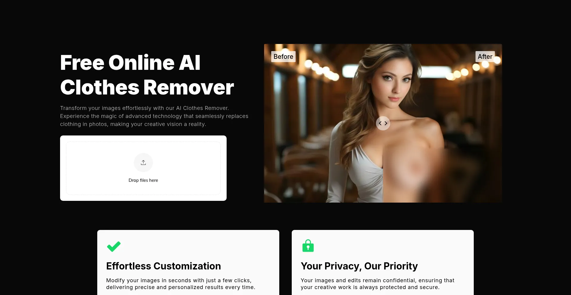 Discover our AI Clothes Remover tool! Effortlessly replace clothing in images online for free. Transform your visuals today!