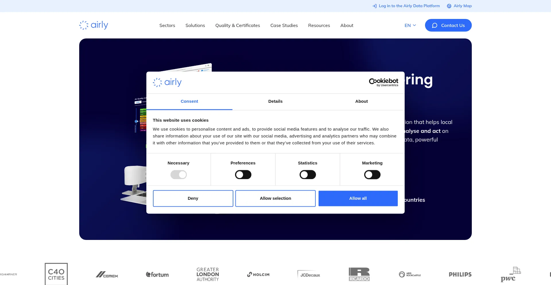 Die Website implementiert Cookie-Zustimmungsmechanismen in Compliance mit Datenschutzregulierungen wie DSGVO oder CCPA. Dies demonstriert, dass airly.org Datenschutzstandards einhält und Benutzern Kontrolle über persönliche Datenerfassungspraktiken bietet.