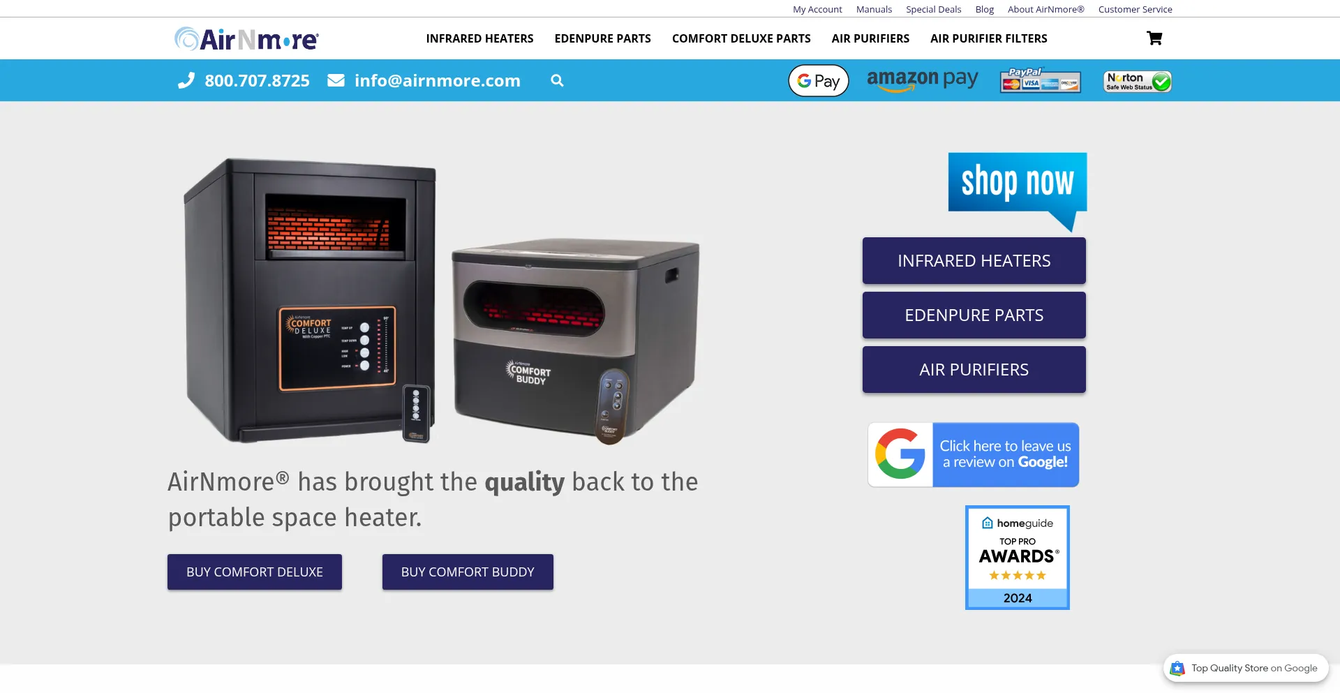 AirNmore® & EdenPURE Infrared Heaters, Parts, and Repair services. AirNmore® is an independently owned and authorized EdenPURE service center.