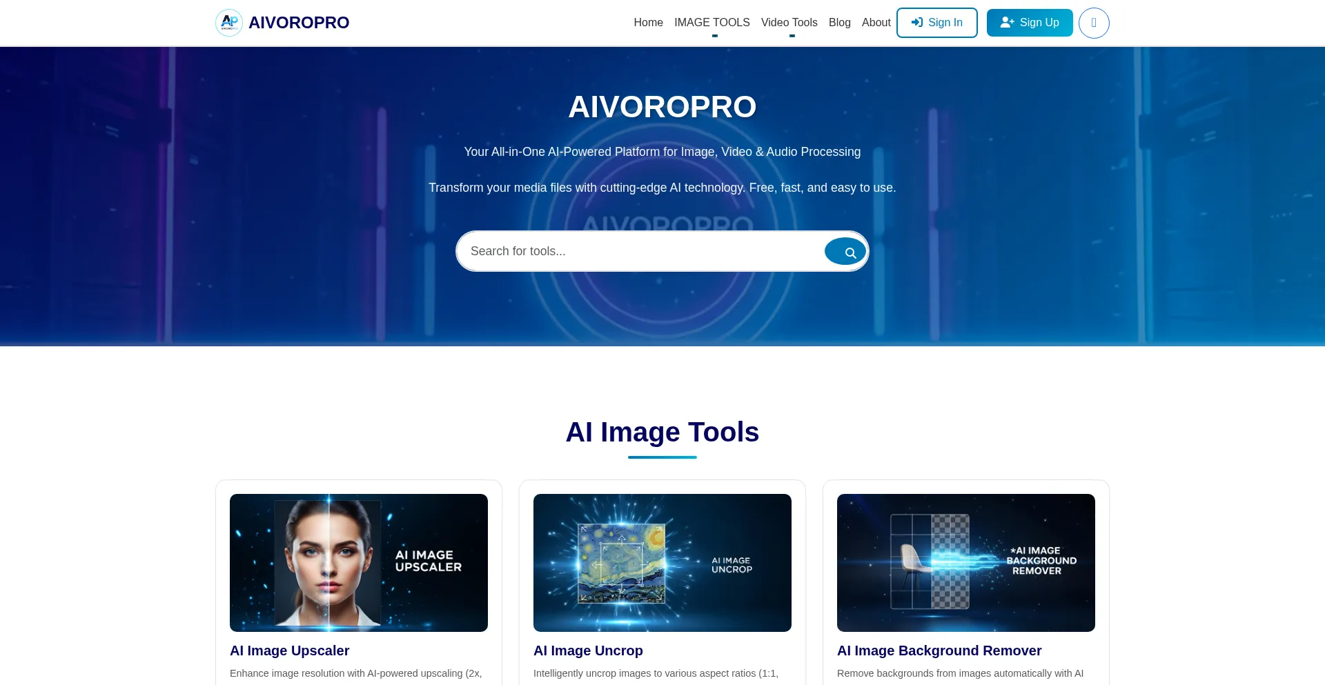 AIVOROPRO - Free AI-powered online tools for image conversion, video processing, audio conversion, image upscaling, background removal, watermark removal, and more. Convert JPG ...