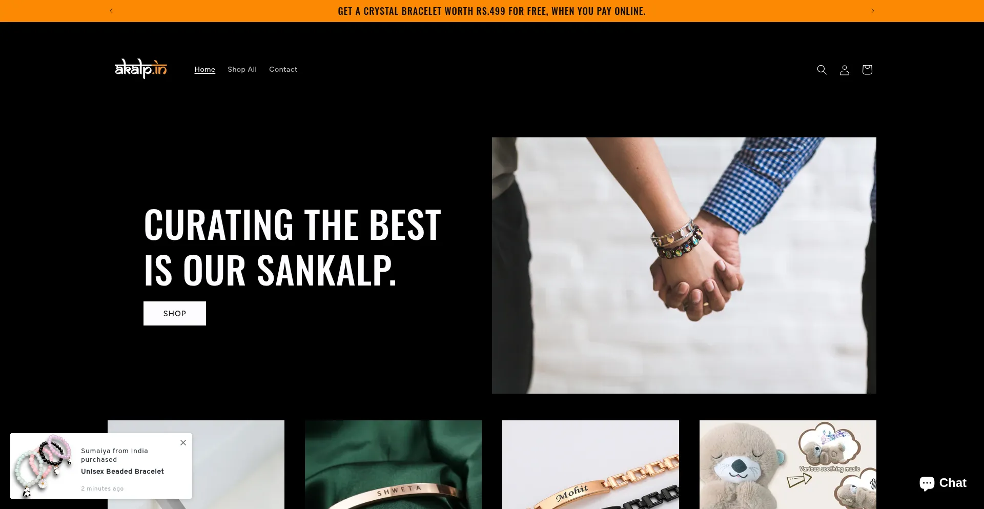 GET A CRYSTAL BRACELET WORTH RS.499 FOR FREE, WHEN YOU PAY ONLINE.