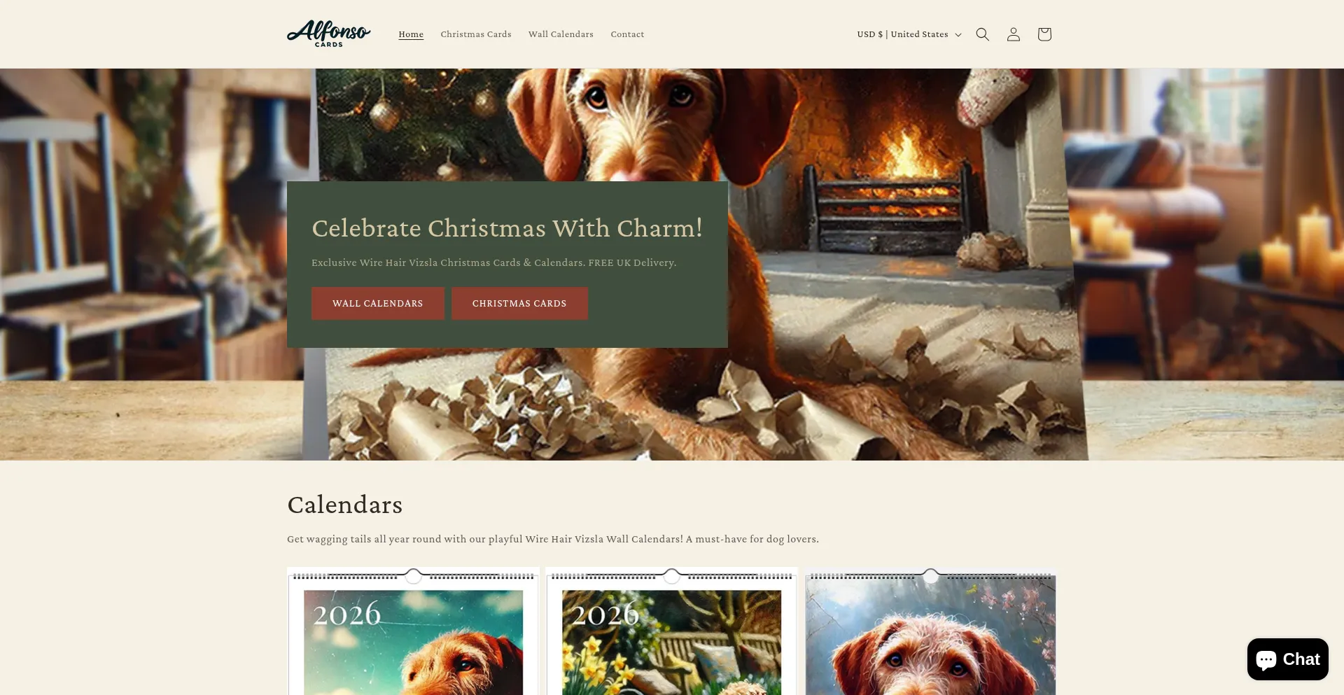 Exclusive Wire Hair Vizsla Christmas Cards & Calendars.