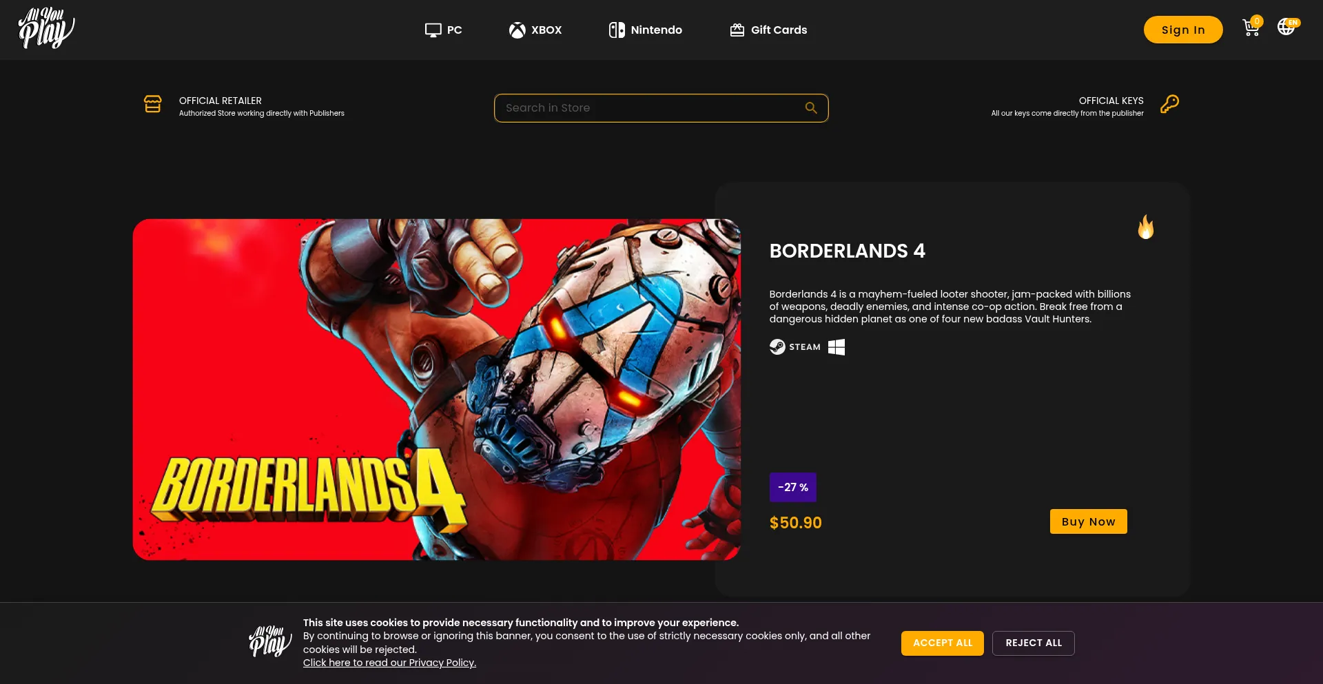 Official retailer for cheaper PC, Xbox, Nintendo, and Steam game keys! Get authentic keys with instant delivery and rely on our top-notch customer support.