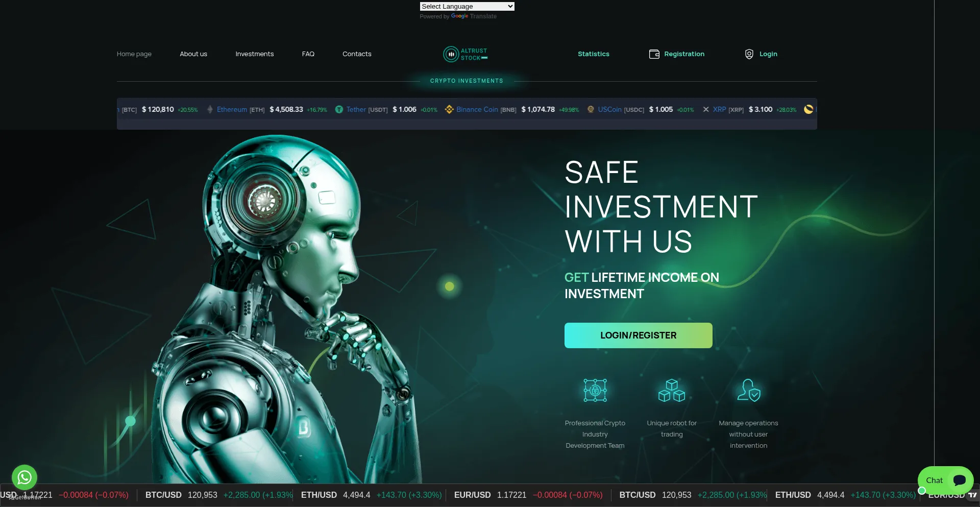Cryptocurrency, Financial Service, Registration Form, Forex, Bootstrap Framework, Google Translate, Young Domain