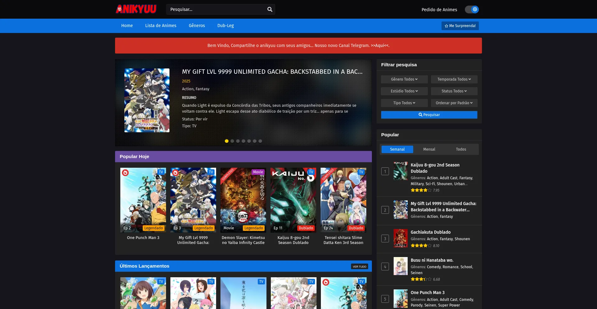 Anikyuu. A melhor maneira de assistir animes online grátis, basta dar Play e ver seus animes favoritos em HD, atualizados diariamente.