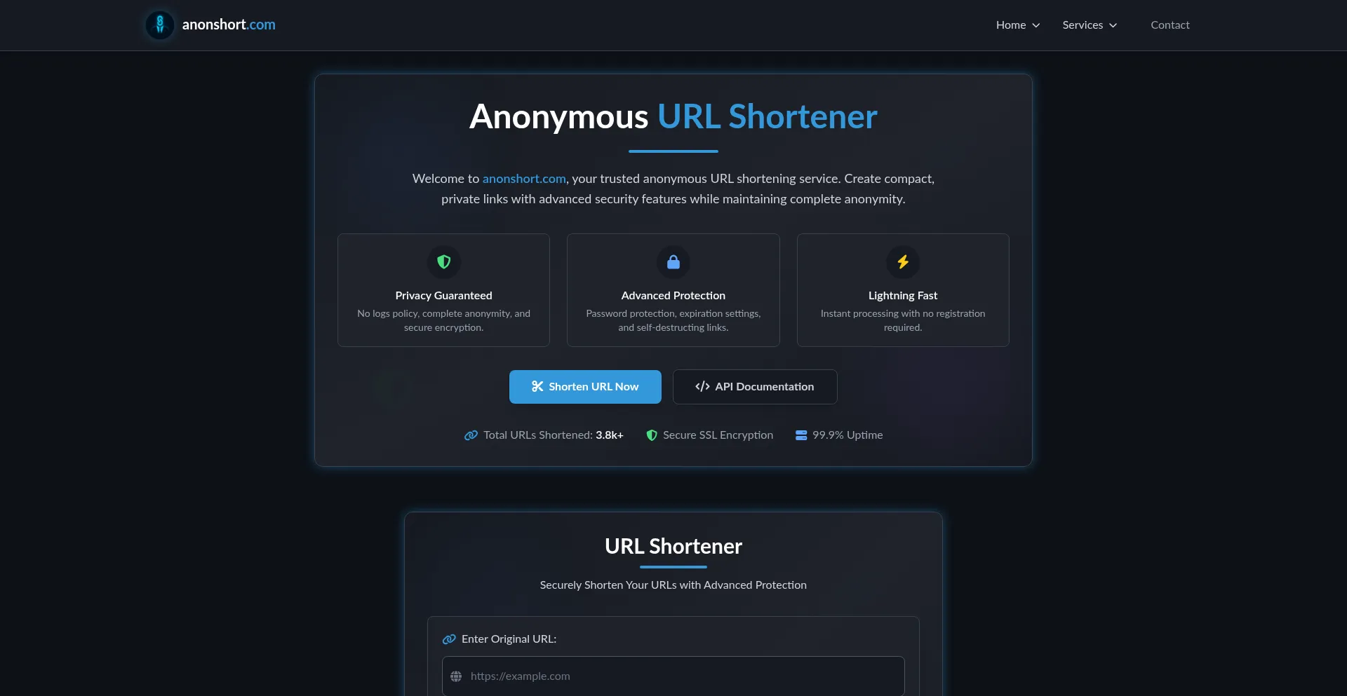 AnonShort - Anonymous URL Shortener | Secure, No Logs, Free