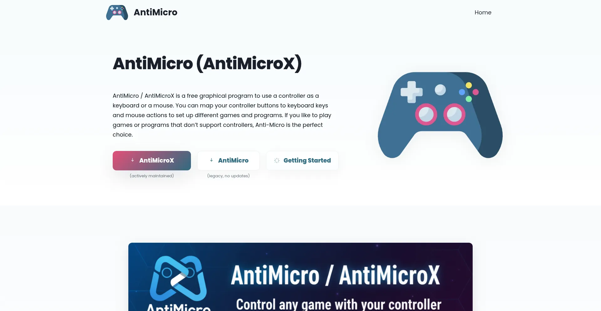AntiMicro or AntiMicroX is a tool to map controller buttons to keyboard and mouse. Download free for Windows & Linux to control games and apps.