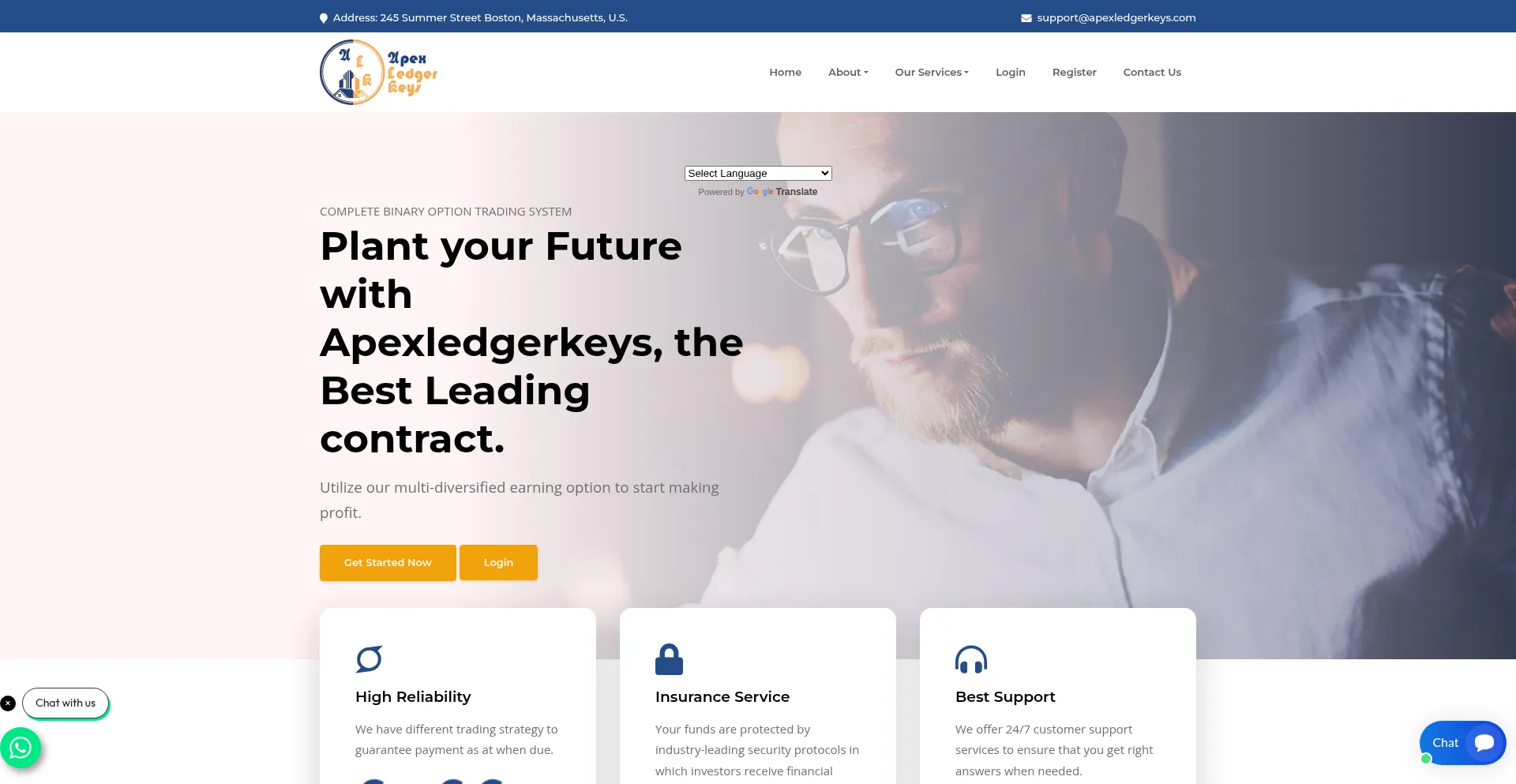 Cryptocurrency, Registration Form, Forex, Bootstrap Framework, Google Translate, Animate.css Framework