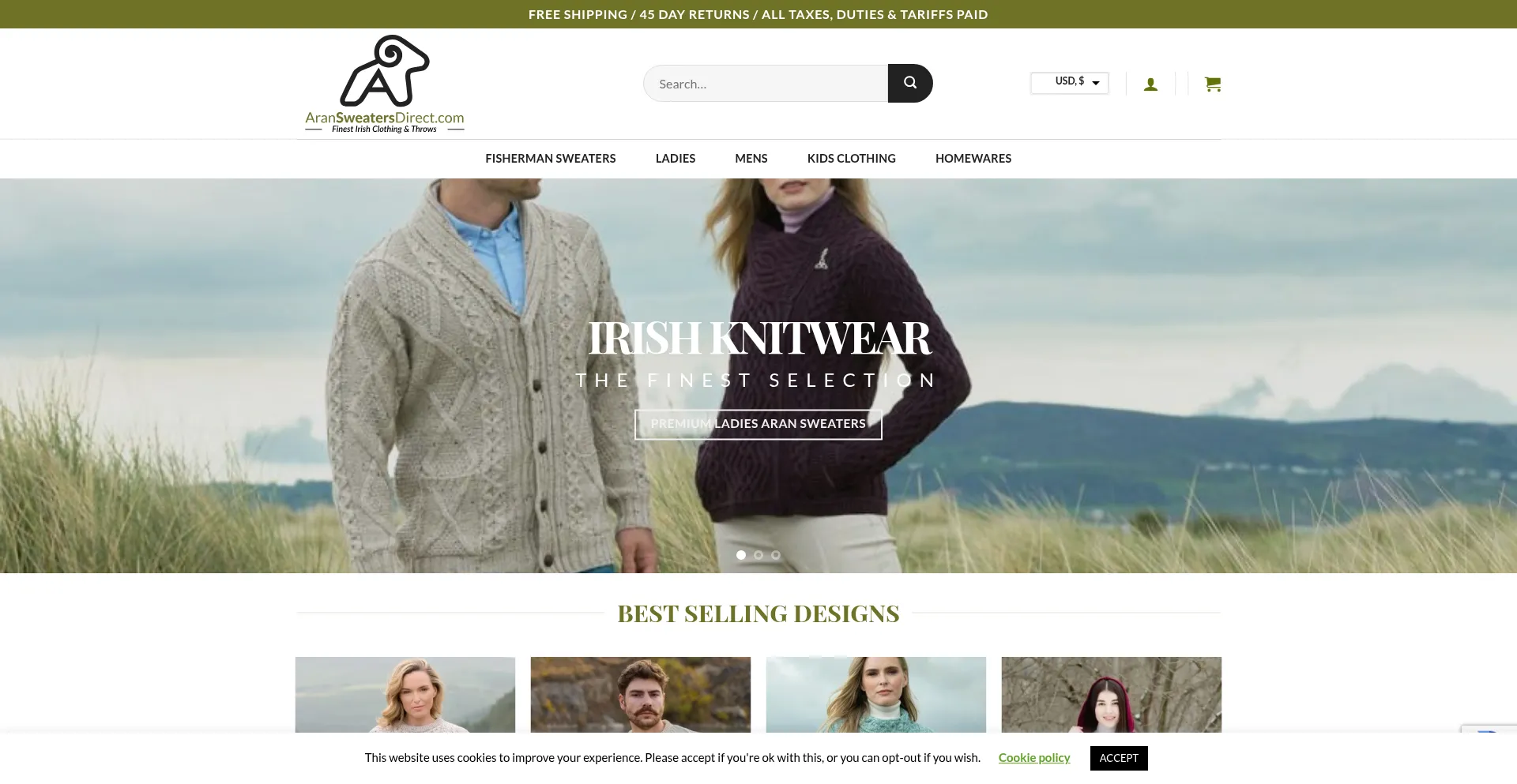 Aran Sweaters Direct is the place to go for authentic Irish sweaters and clothing. We carry a wide selection of Irish wool sweaters, including traditional Aran sweaters. Shop to...