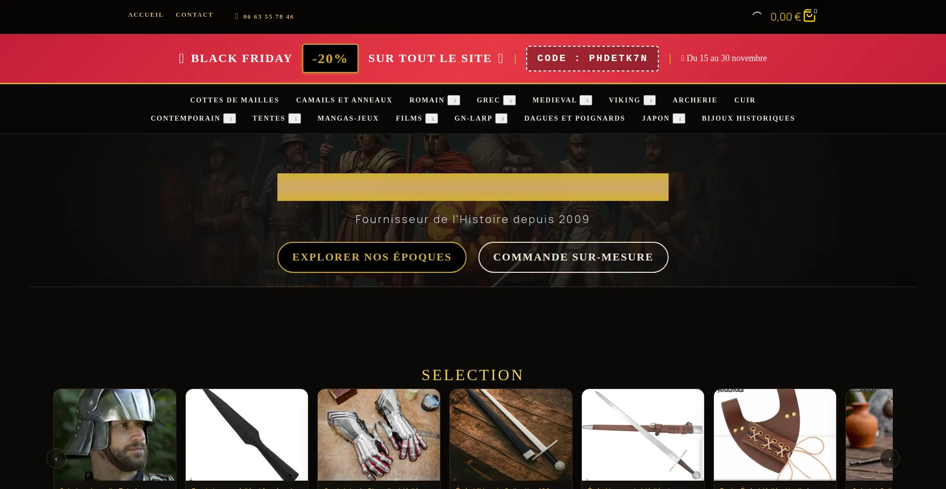 Armes médiévales authentiques : épées, casques, boucliers et armures. Découvrez notre collection historique pour reconstitution et collection sur Armurias.