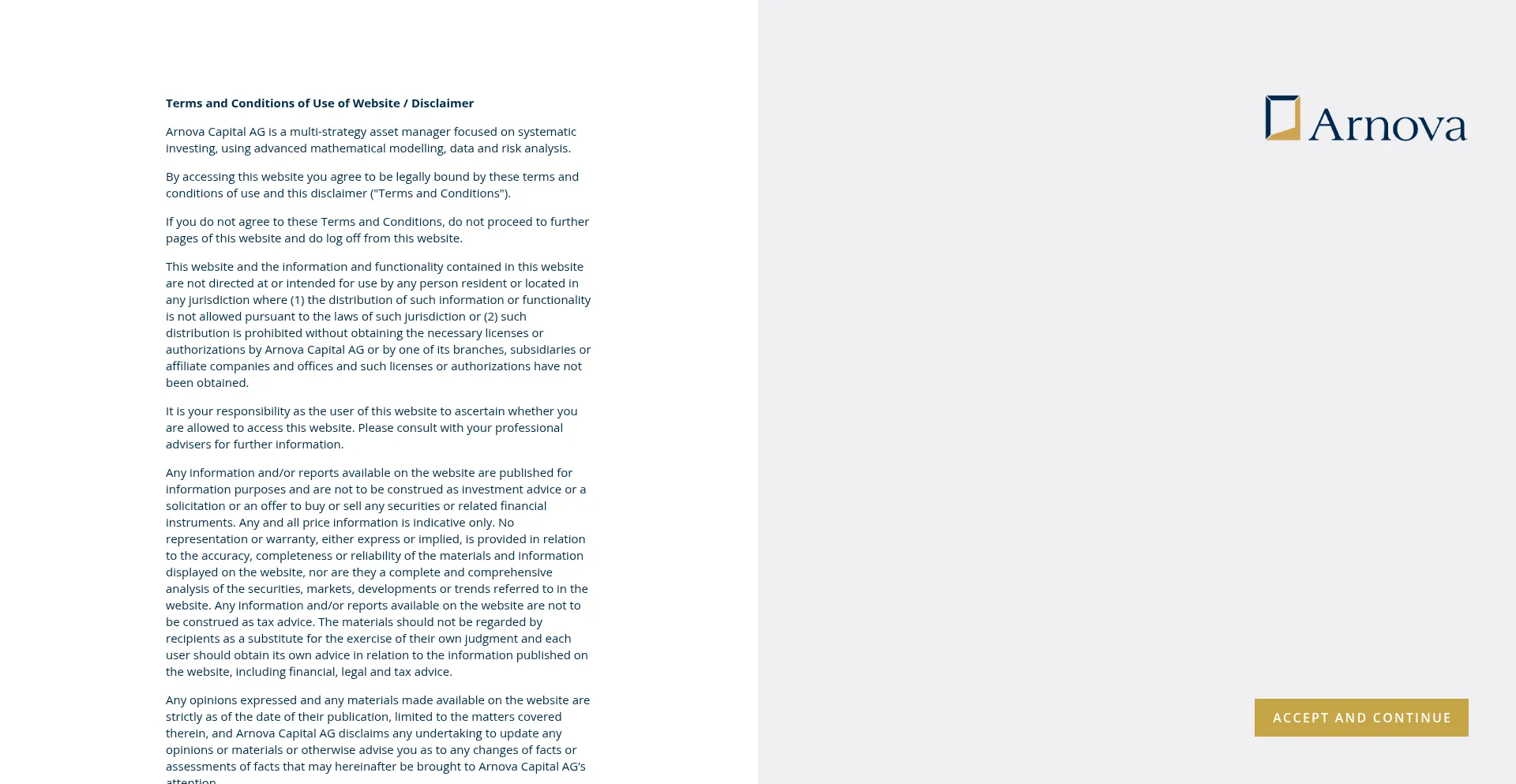 Arnova Capital AG is a Swiss multi-strategy asset manager with a focus on systematic investments.