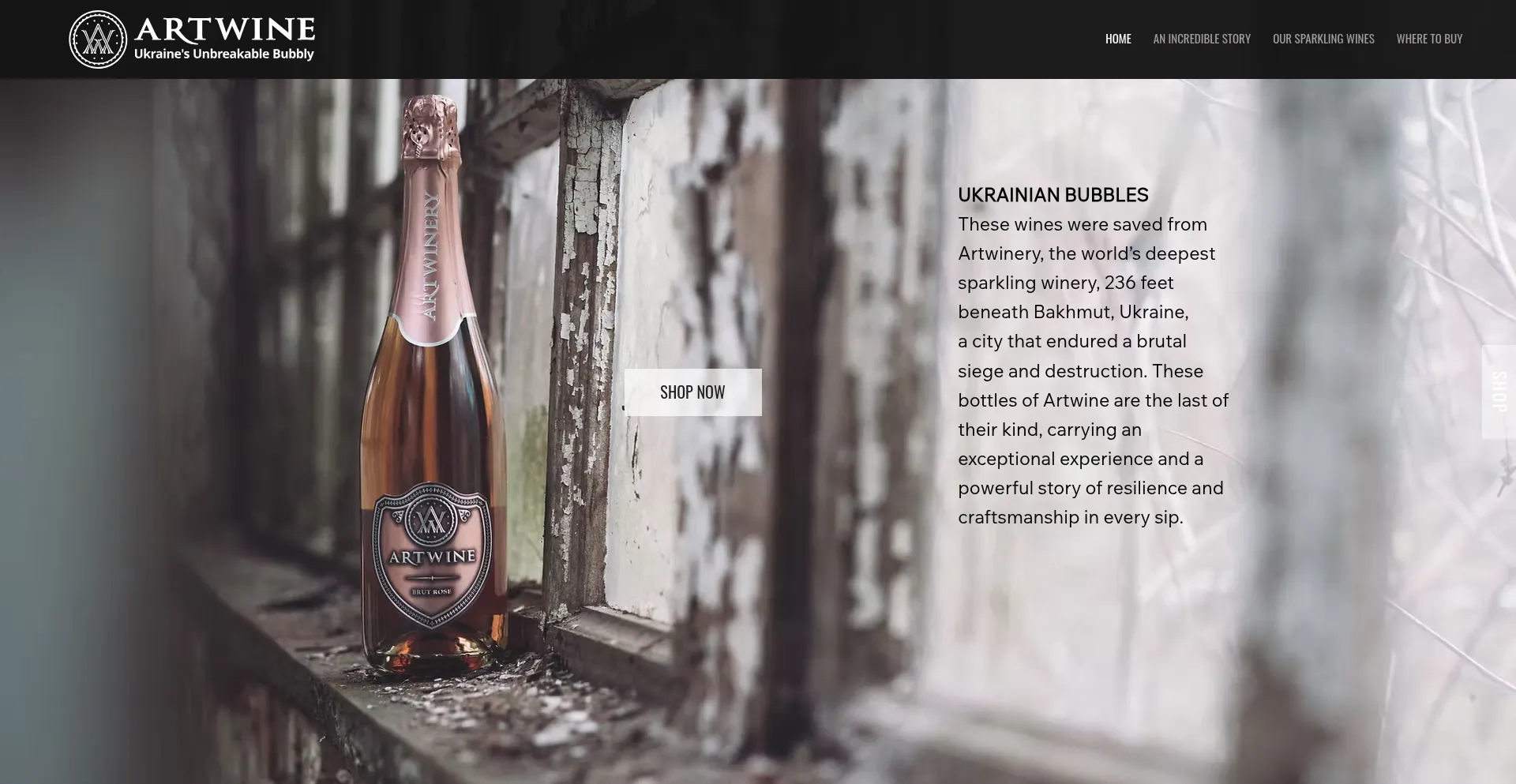 Artwine: A rare sparkling wine crafted by Artwinery 236 feet underground in Bakhmut, Ukraine. Smuggled out before occupation, these bottles of Artwine are the last in the world...