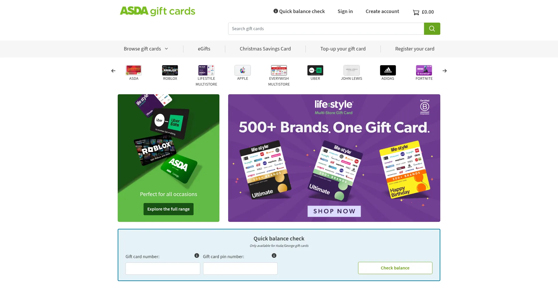 Welcome to Asda Gift Cards! We've got the perfect gift card, no matter the occasion available from your favourite big-name brands