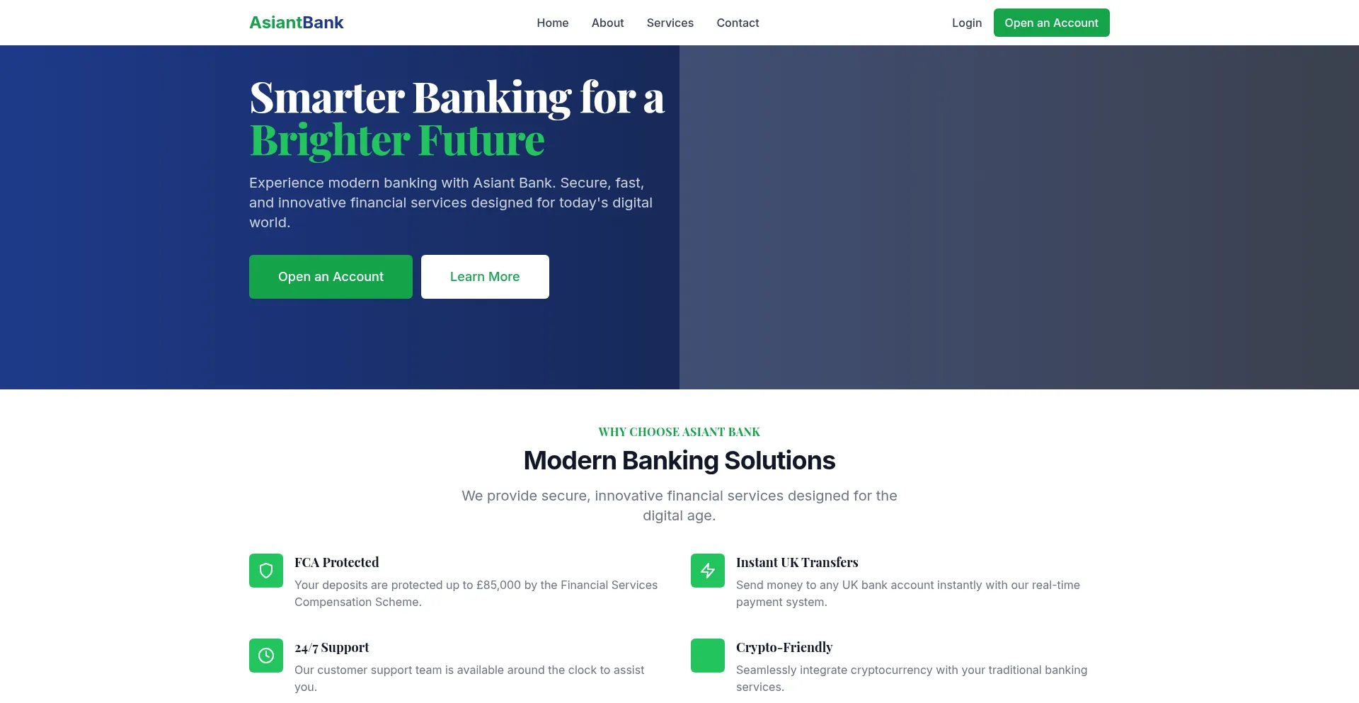Experience modern banking with Asiant Bank. Secure, fast, and innovative financial services for personal and business customers in the UK.