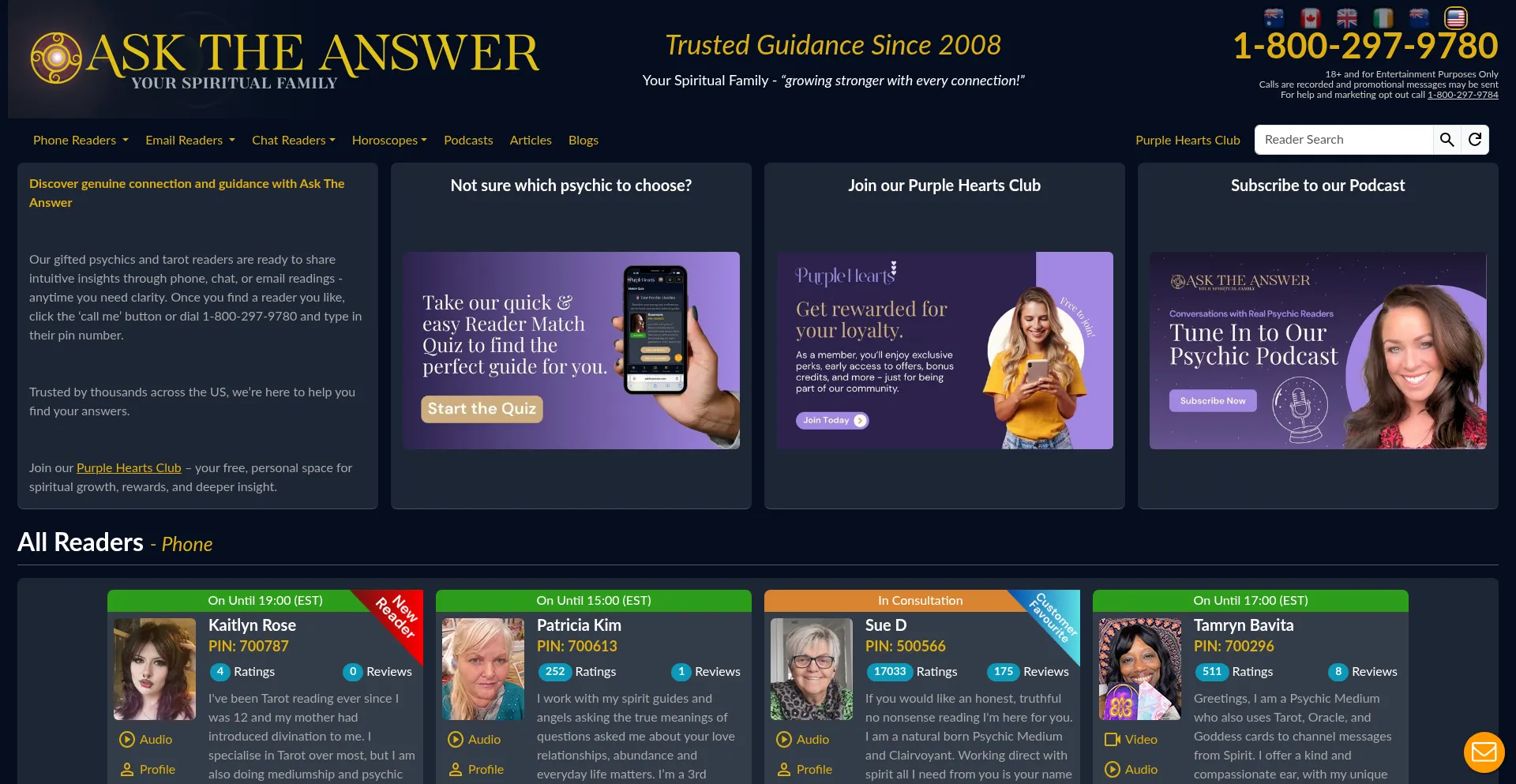 Choose from over 200 psychic readers. Let them answer your questions today!