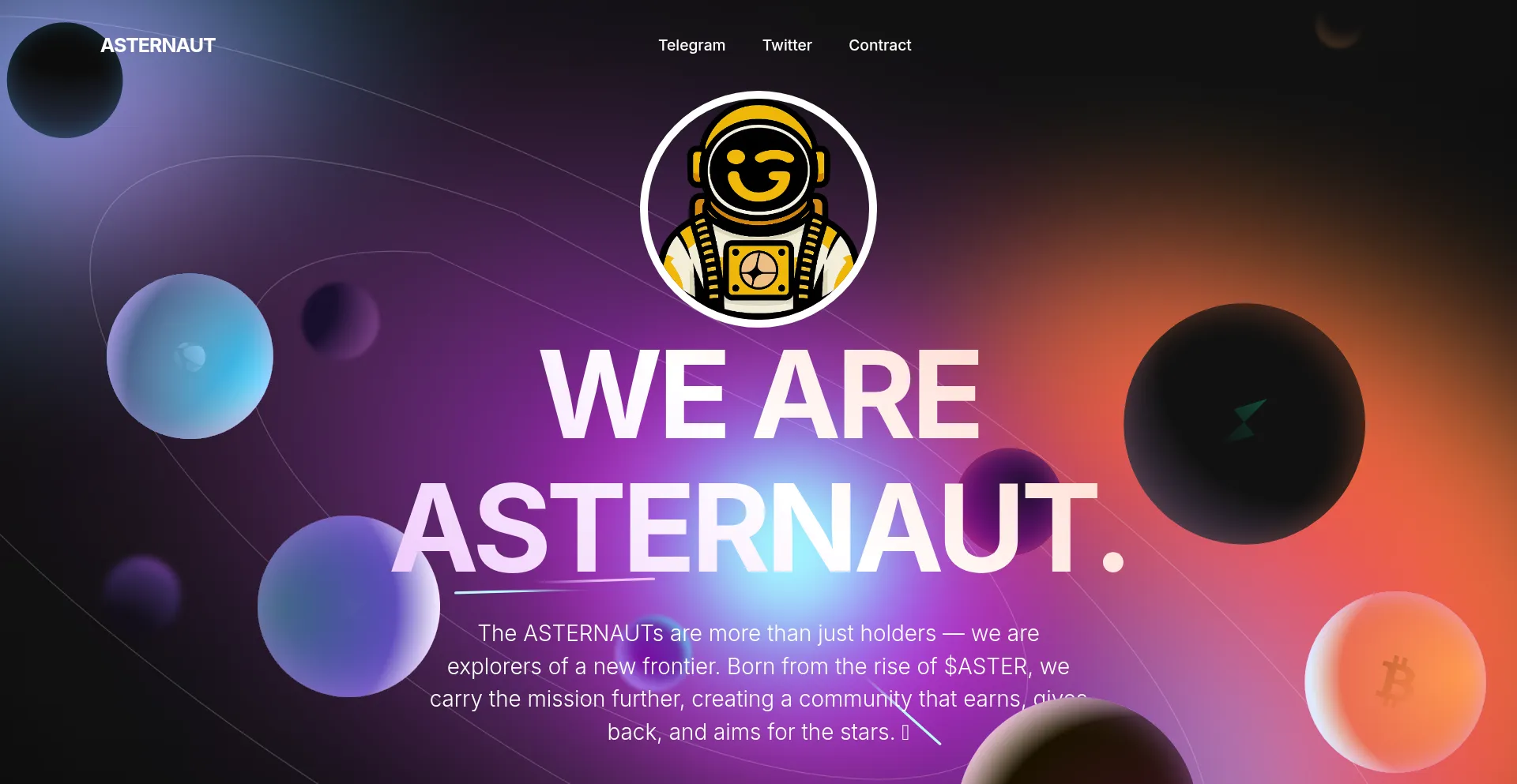 The ASTERNAUTs are more than just holders — we are explorers of a new frontier. Born from the rise of $ASTER, we carry the mission further, creating a community that earns, gi...