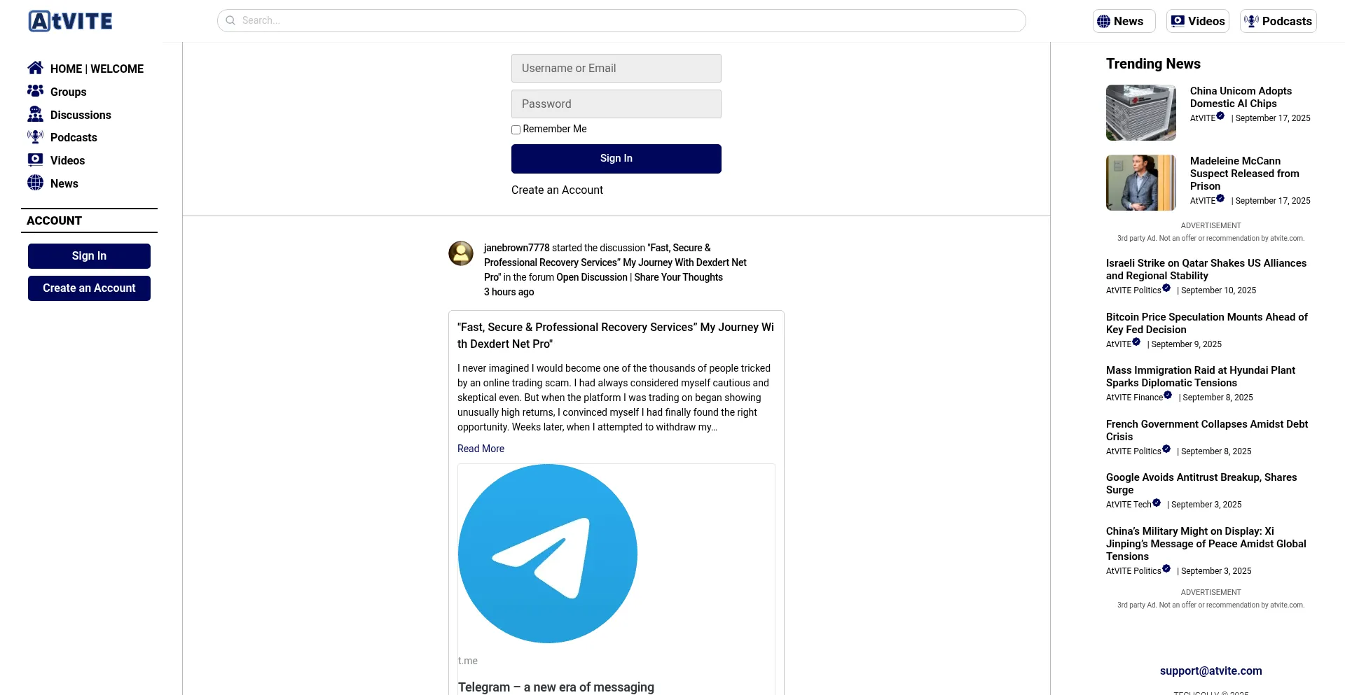 Die Website atvite.com bewirbt Fondswiederherstellungsdienste für verlorene oder gestohlene Vermögenswerte. Während einige auf Erfolgshonorarbasis operieren, können andere Vorauszahlungen erfordern, was auf betrügerische Operationen hinweisen kann. Verifizieren Sie Anmeldeinformationen und regulatorische Compliance, bevor Sie solche Dienste in Anspruch nehmen.