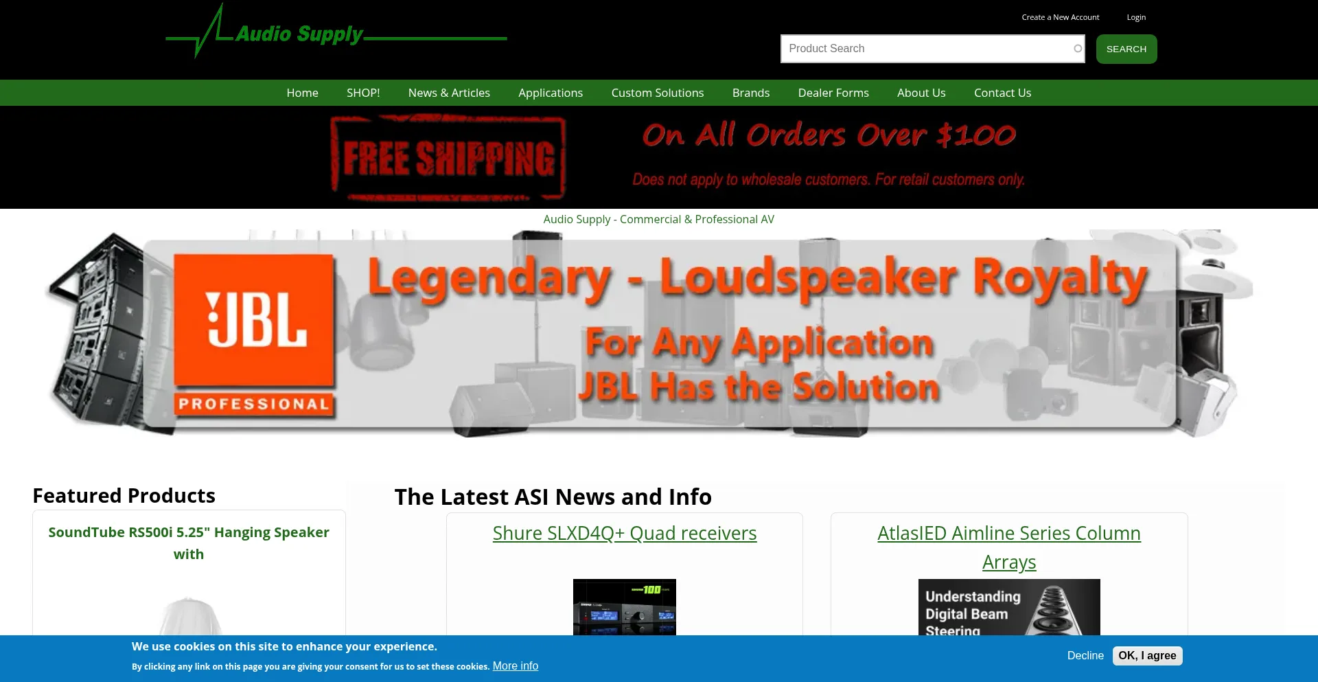 Audio Supply - Distributor of commercial & professional A/V products. Since 1988, we have carried Shure, Atlas, Crown, JBL, Soundtube, TOA & more.