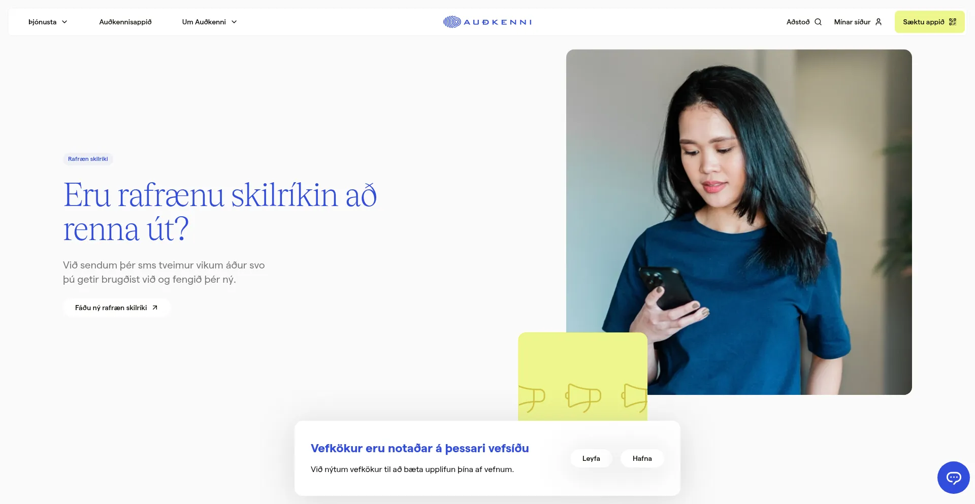 apps.apple.com mitt.audkenni.is www.cookiehub.com www.linkedin.com maps.app.goo.gl play.google.com audkenni.is www.google-analytics.com api.talkdeskapp.com wyv31614.live.dynatrace.com +7 mehr