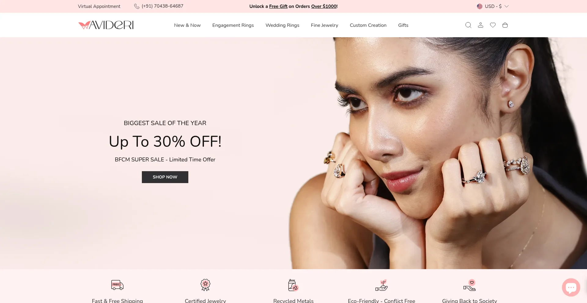 Shop moissanite and lab grown diamond engagement rings at Avideri. Discover custom, handcrafted designs with exceptional brilliance and ethical sourcing.