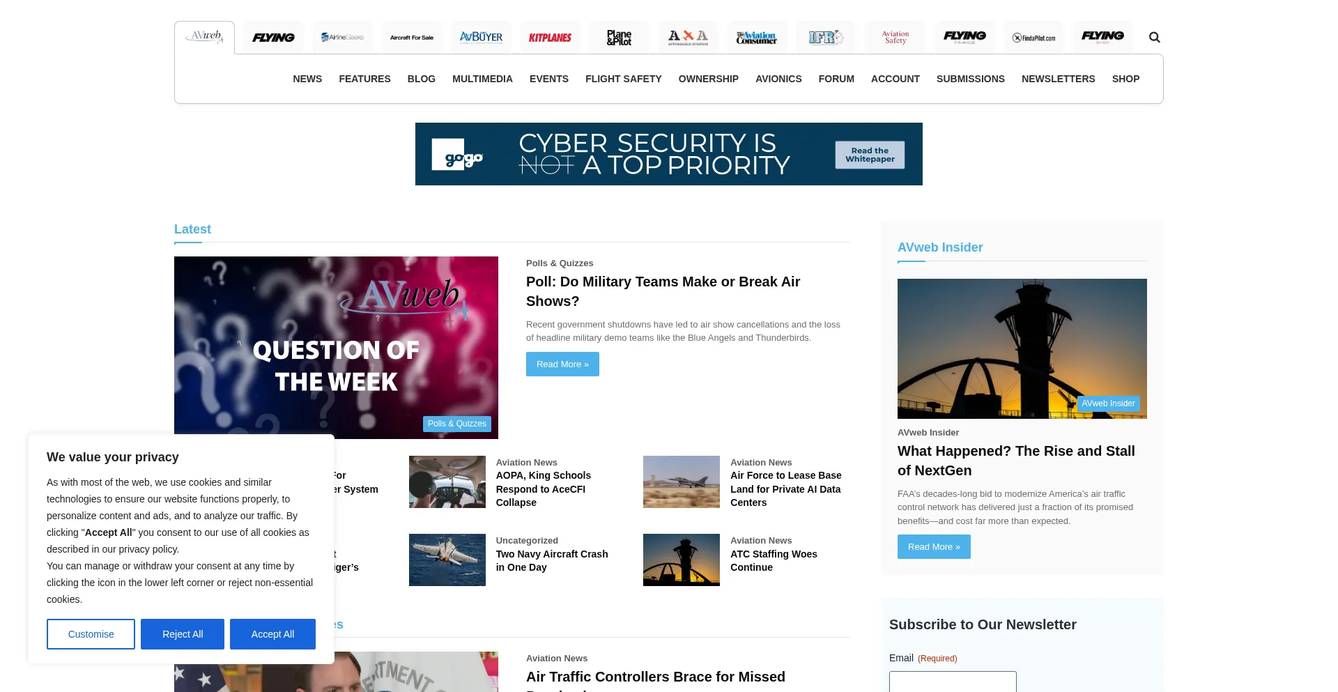 Stay informed with AVweb's comprehensive aviation news, expert analyses, and multimedia content tailored for pilots and aviation professionals.​