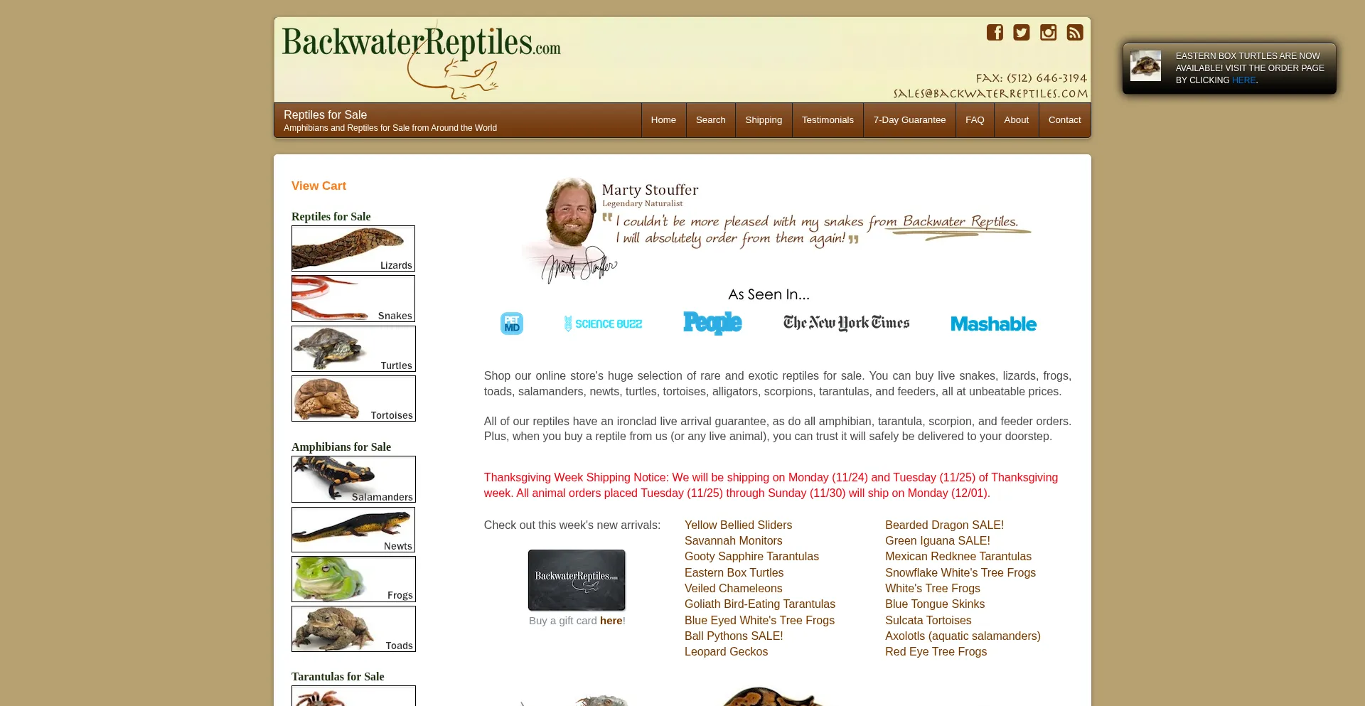 Your online reptile store with over 500 species of live reptiles for sale, including lizards, snakes, frogs, turtles, and tortoises. Live arrival is guaranteed! A+ BBB rating.