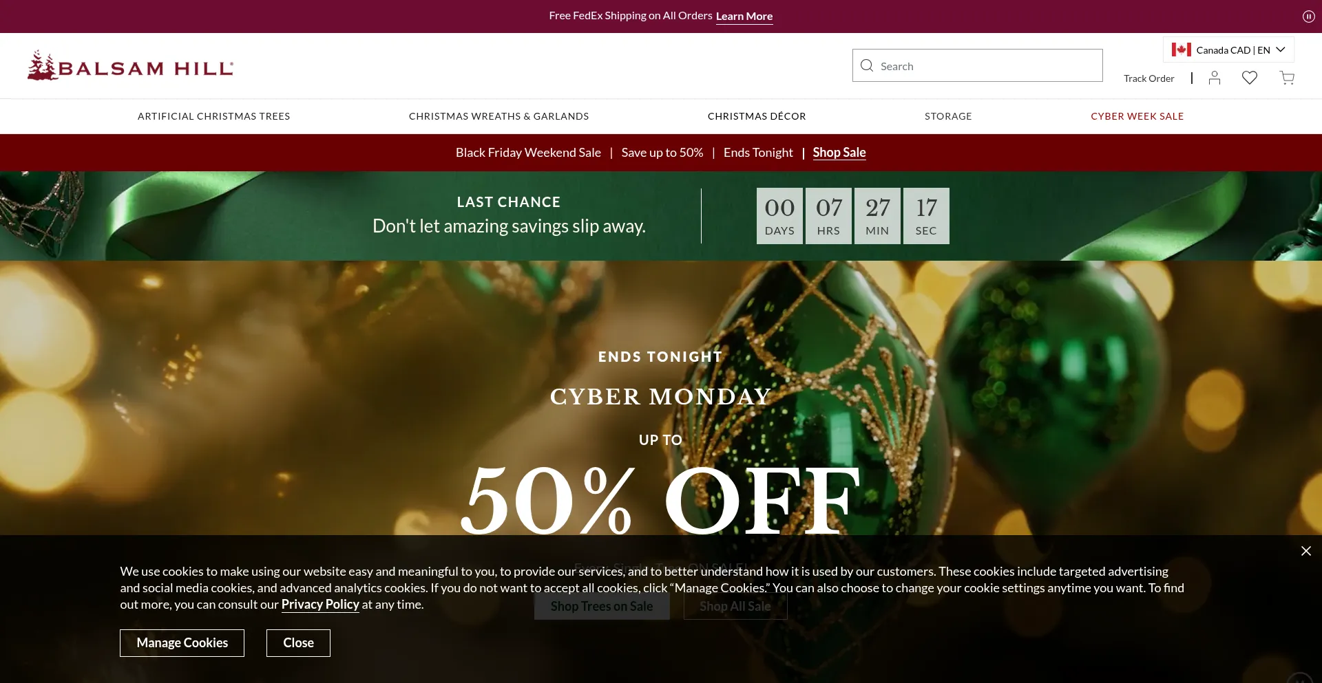 Die Website implementiert Cookie-Zustimmungsmechanismen in Compliance mit Datenschutzregulierungen wie DSGVO oder CCPA. Dies demonstriert, dass balsamhill.ca Datenschutzstandards einhält und Benutzern Kontrolle über persönliche Datenerfassungspraktiken bietet.