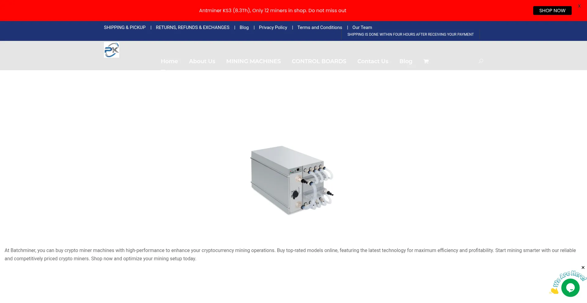 Buy crypto miner machines online at batchminer. We have the latest machines with warranty and quick shipping after purchase.