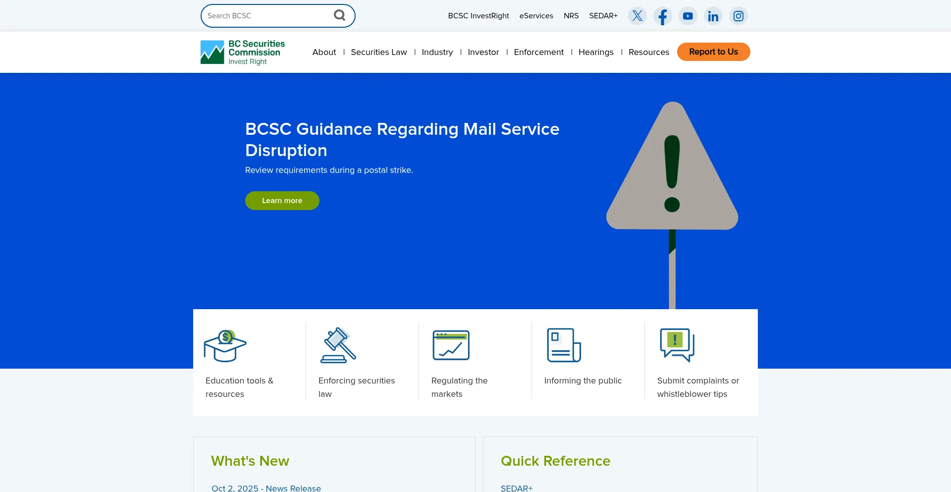 Die Anwesenheit von Social-Media-Links auf der Website deutet darauf hin, dass bcsc.bc.ca offizielle Konten auf Social-Media-Plattformen beibehält, was ein positiver Indikator für Glaubwürdigkeit und Engagement ist.