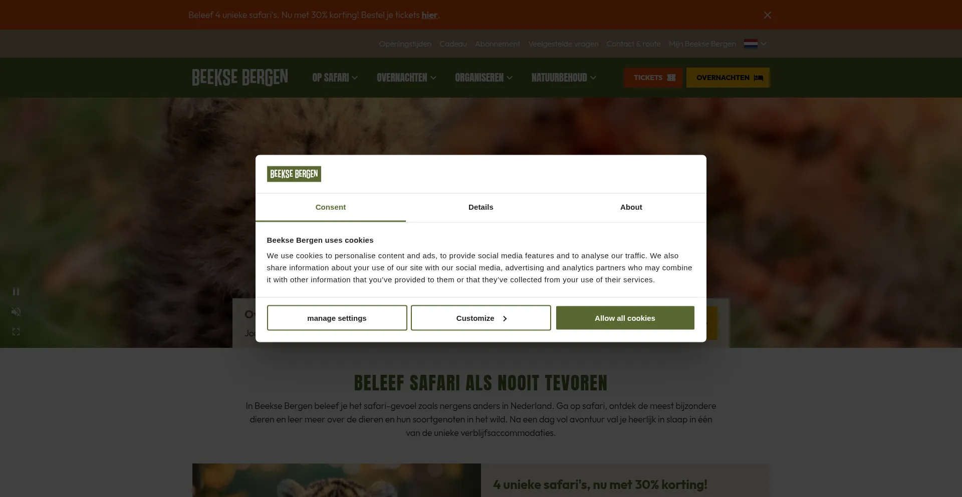 Die Website implementiert Cookie-Zustimmungsmechanismen in Compliance mit Datenschutzregulierungen wie DSGVO oder CCPA. Dies demonstriert, dass beeksebergen.nl Datenschutzstandards einhält und Benutzern Kontrolle über persönliche Datenerfassungspraktiken bietet.