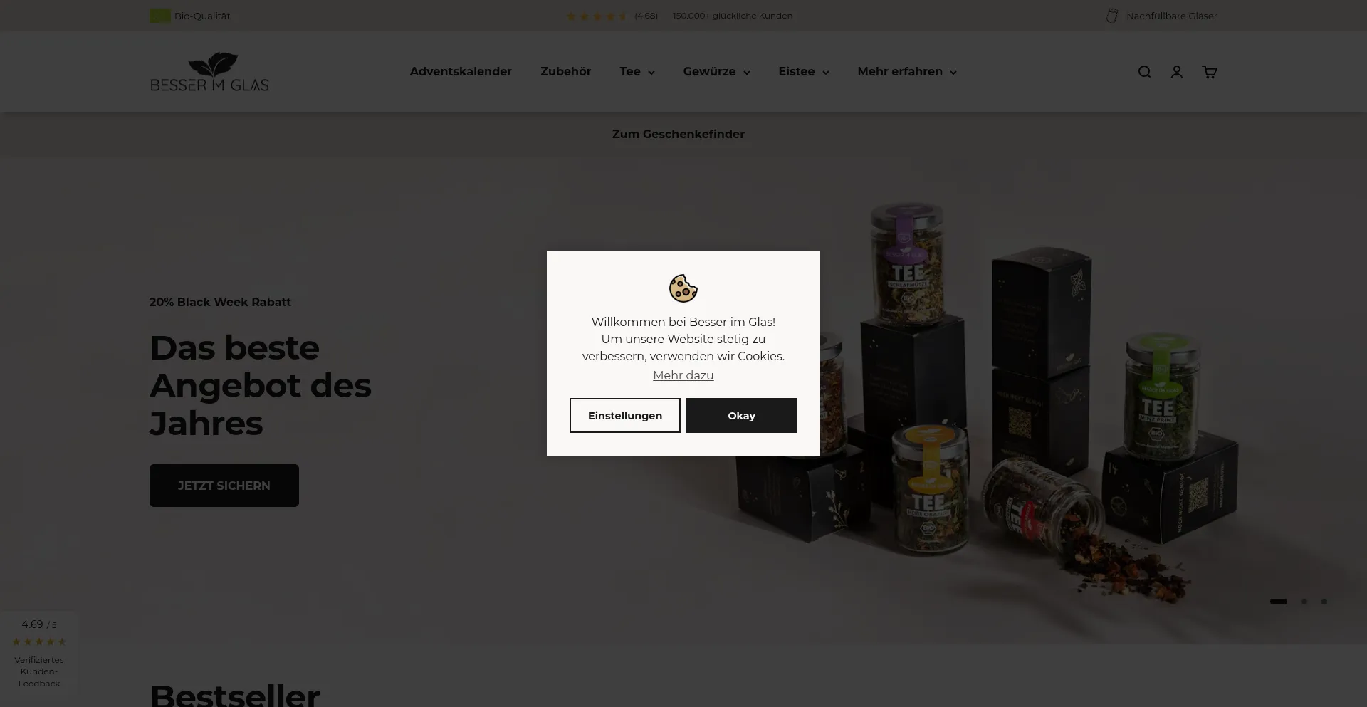 Besser im Glas 💚 Dein Onlineshop für leckere Bio-Tee & Bio-Gewürzmischungen! Bio, nachhaltig & plastikfrei | Hochwertige Geschenkboxen, Sets & Zubehör. Jetzt entdecken!