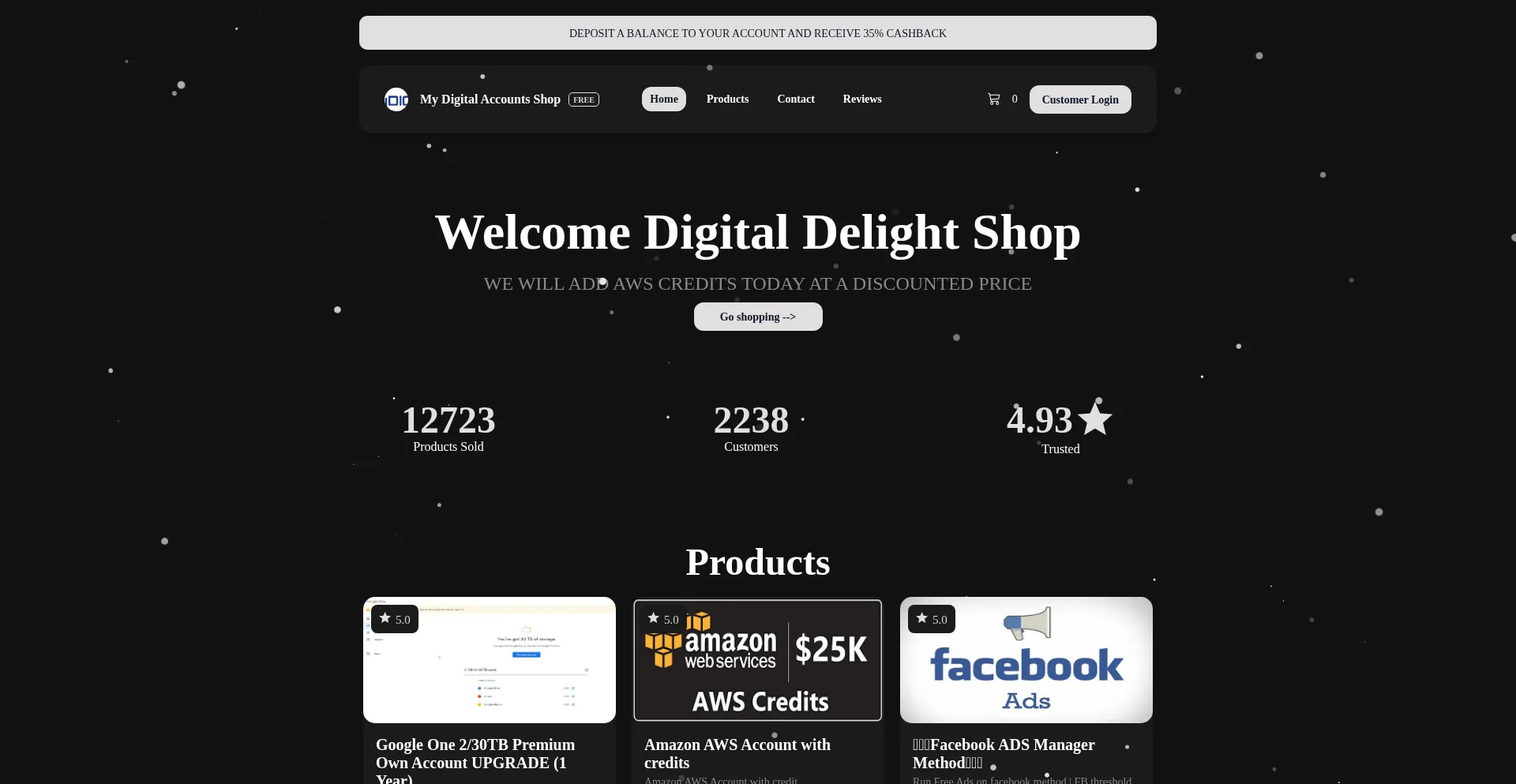 Deposit a balance to your account and receive 35% CashBack