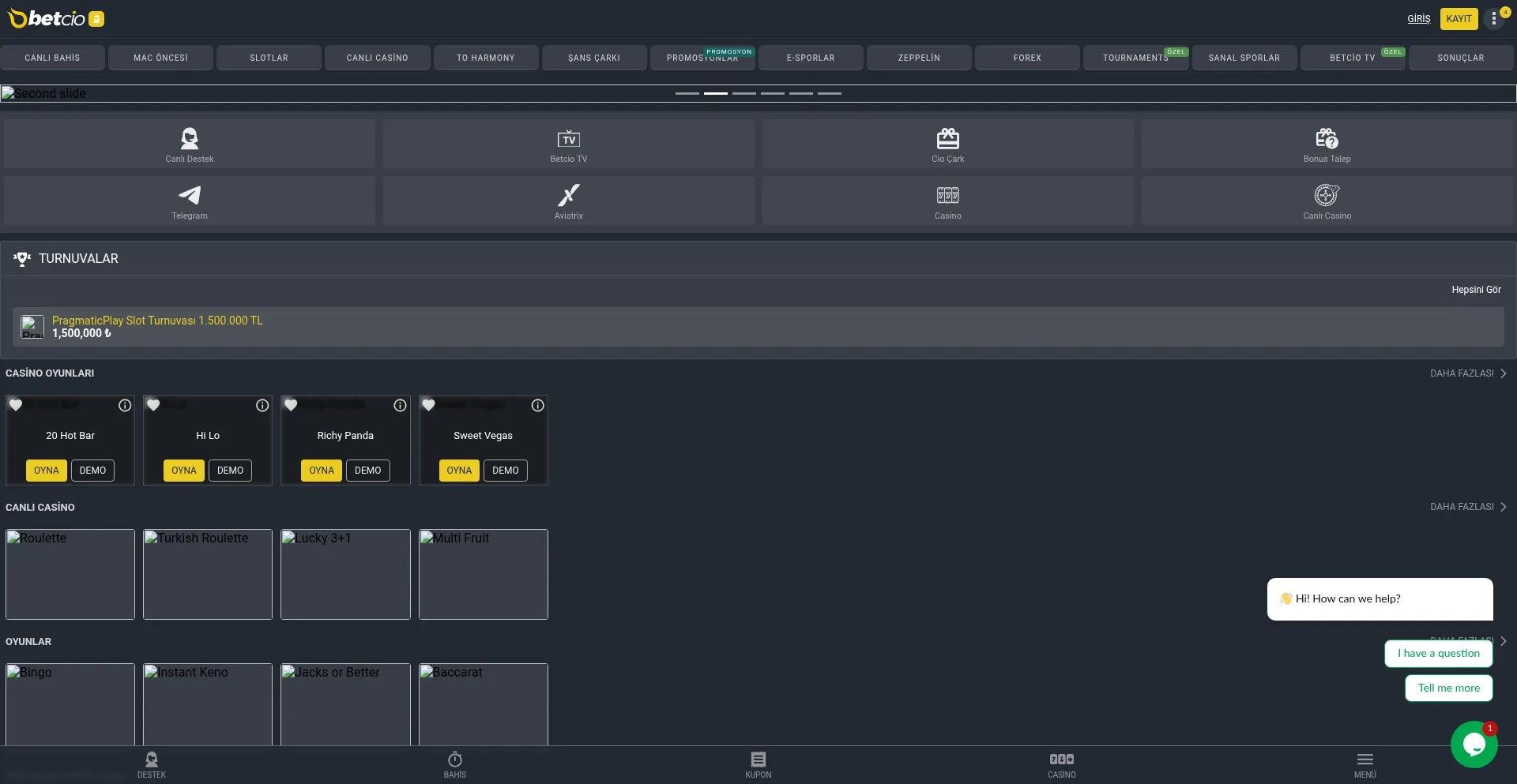 Spor bahisleri, canlı bahis, casino slot ve canlı casino hizmetleri sunan Lisanslı, kaliteli ve denetlenen bir bahis firmasıdır. Tıkla, kazanmaya hemen başla