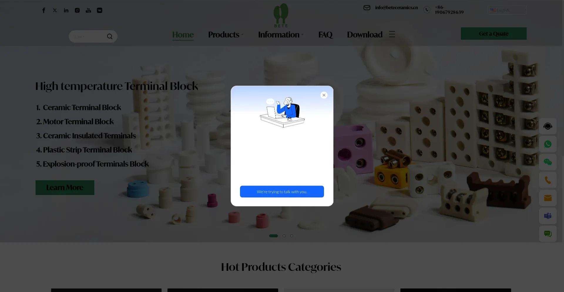 Die Anwesenheit von Social-Media-Links auf der Website deutet darauf hin, dass beteceramics.cn offizielle Konten auf Social-Media-Plattformen beibehält, was ein positiver Indikator für Glaubwürdigkeit und Engagement ist.