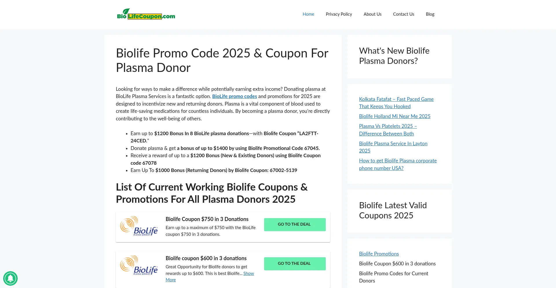 Biolife Promo Code 2025 | Coupon for Promotions Plasma Donors