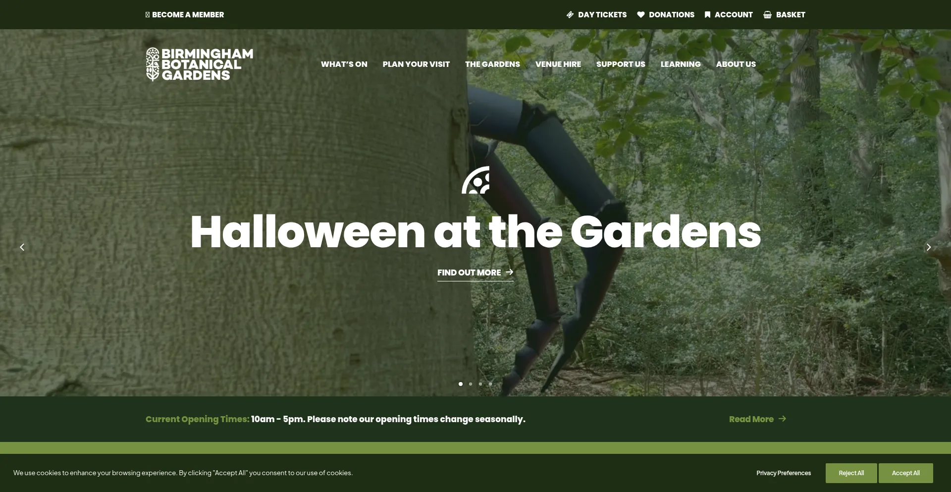 Die Website implementiert Cookie-Zustimmungsmechanismen in Compliance mit Datenschutzregulierungen wie DSGVO oder CCPA. Dies demonstriert, dass birminghambotanicalgardens.org.uk Datenschutzstandards einhält und Benutzern Kontrolle über persönliche Datenerfassungspraktiken bietet.