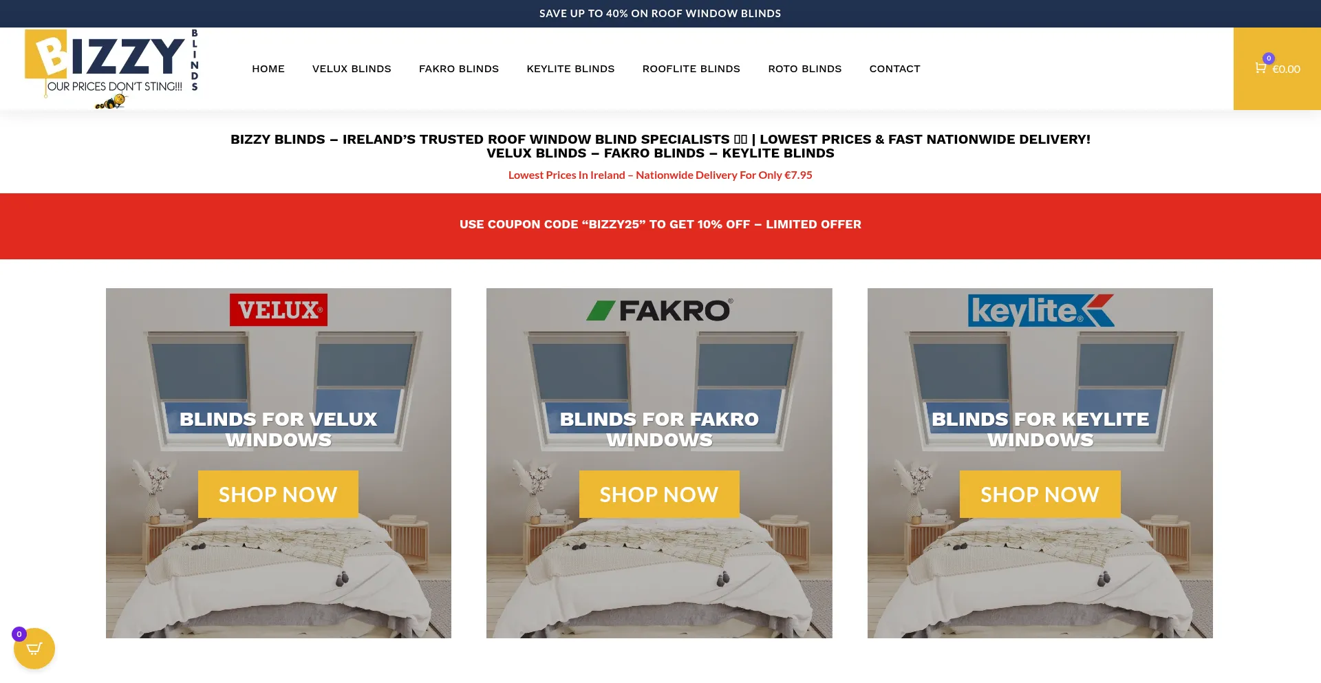 Velux Blinds Ireland - Buy Velux Blinds Ireland 🇮🇪 Fakro Blinds Ireland - Keylite Blinds Ireland - Rooflite Blinds - Shop 🛒 Online - Bizzy Blinds